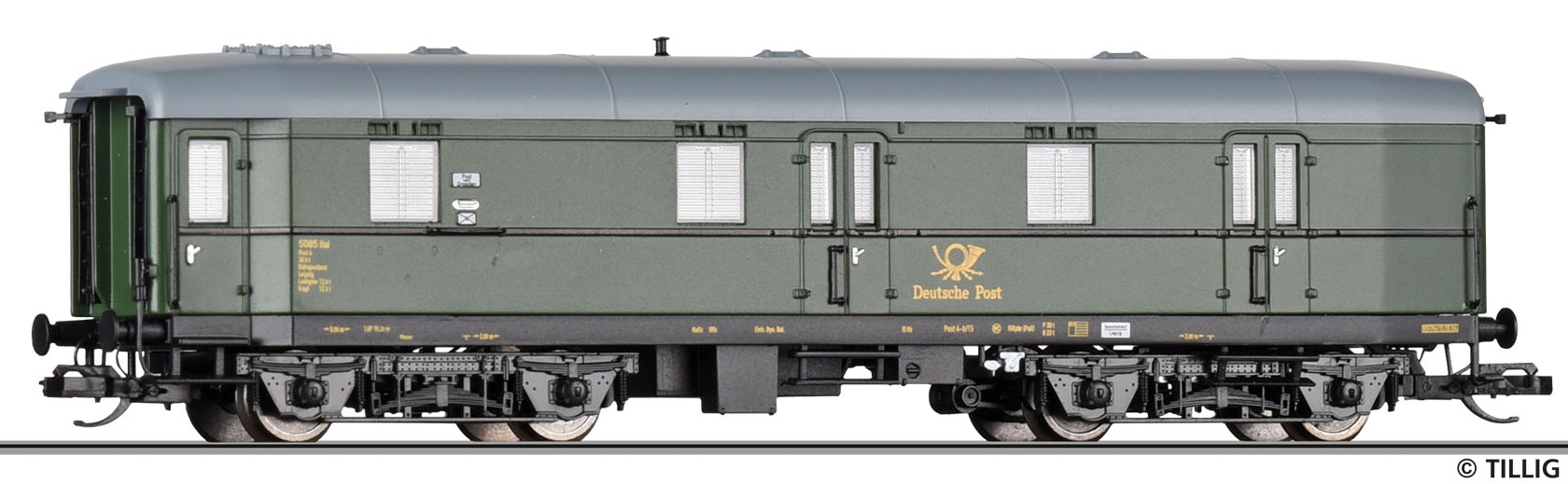 Popis   poštovní vůz zelený s šedou střechou „Deutsche Post”