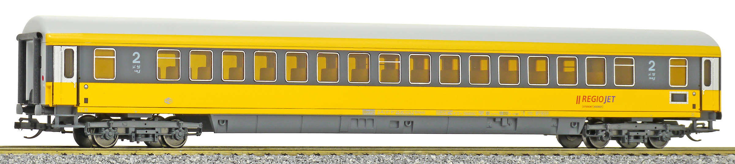 | rychlíkový vůz v barevném schematu „RegioJet“ 2. tř. |