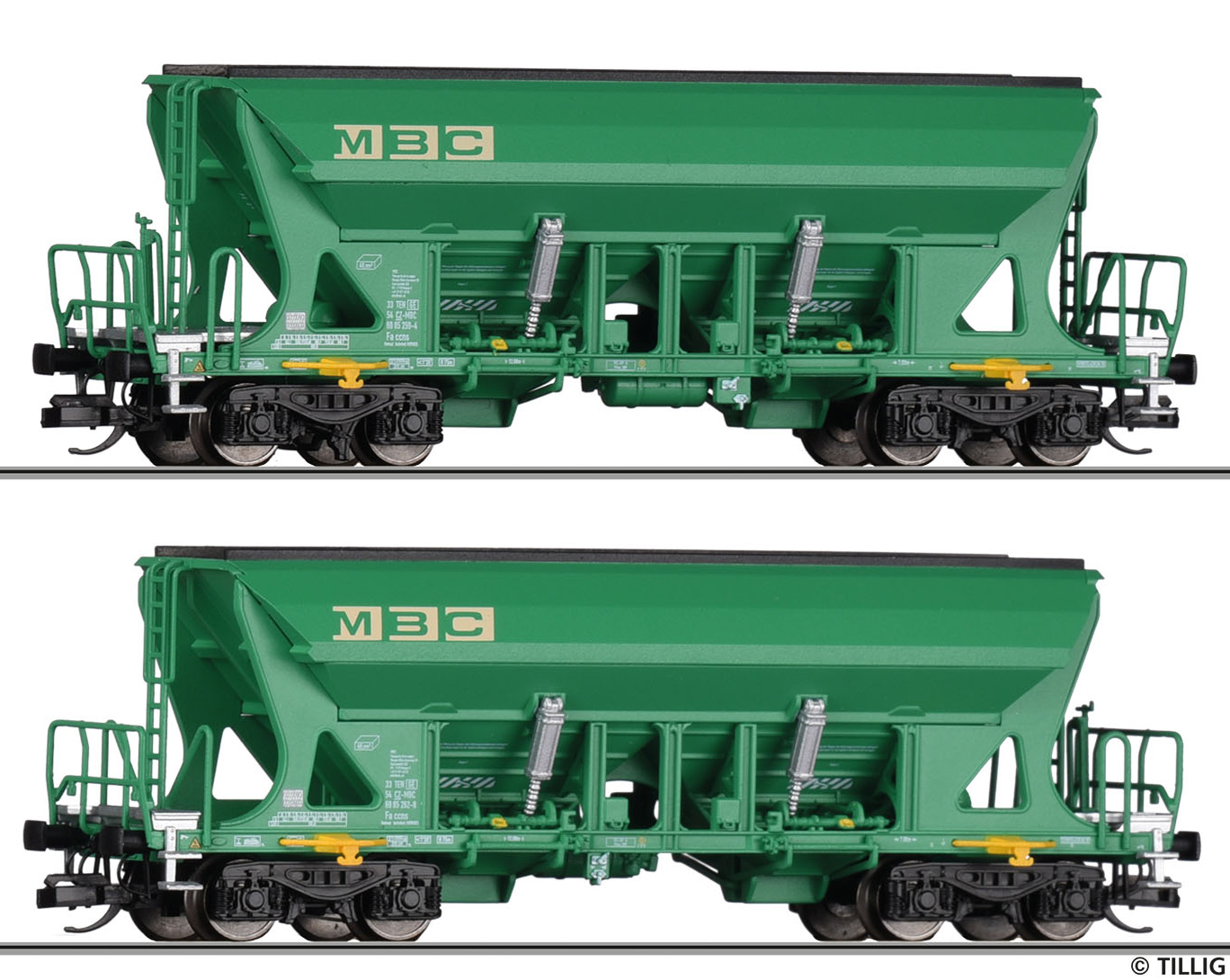 | set dvou nákladních samovýsypných vozů s logem „MBC“ |