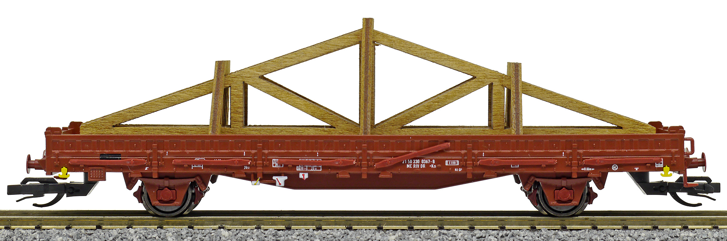 | • Ks 3300 | - | plošinový vůz dvounápravový běžné stavby se sklopnými nízkými stěnami a s krátkými klanicemi |