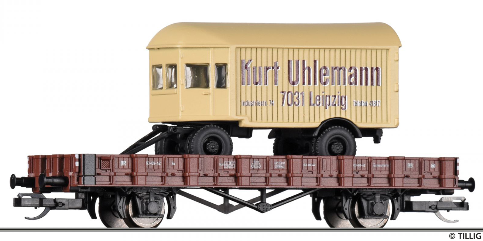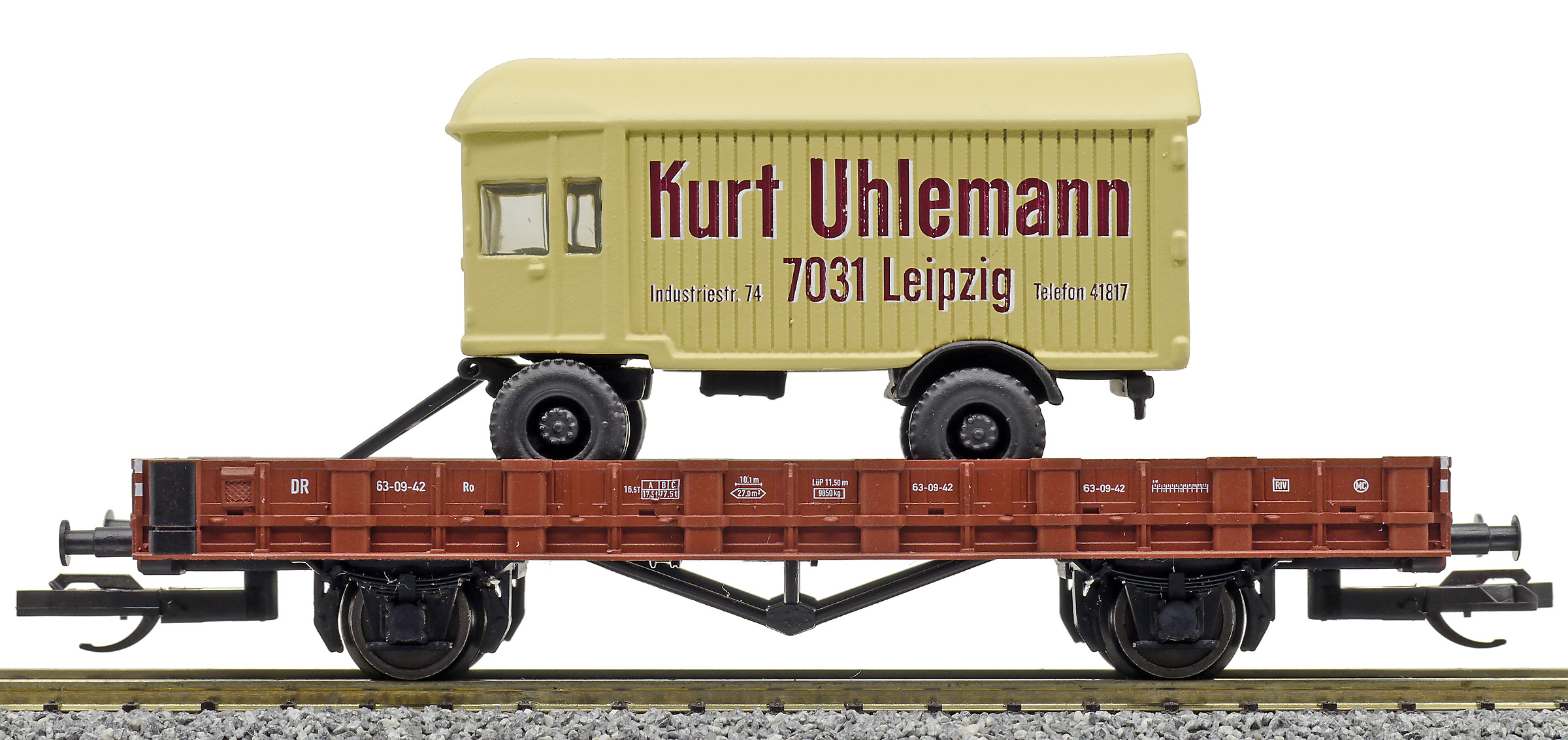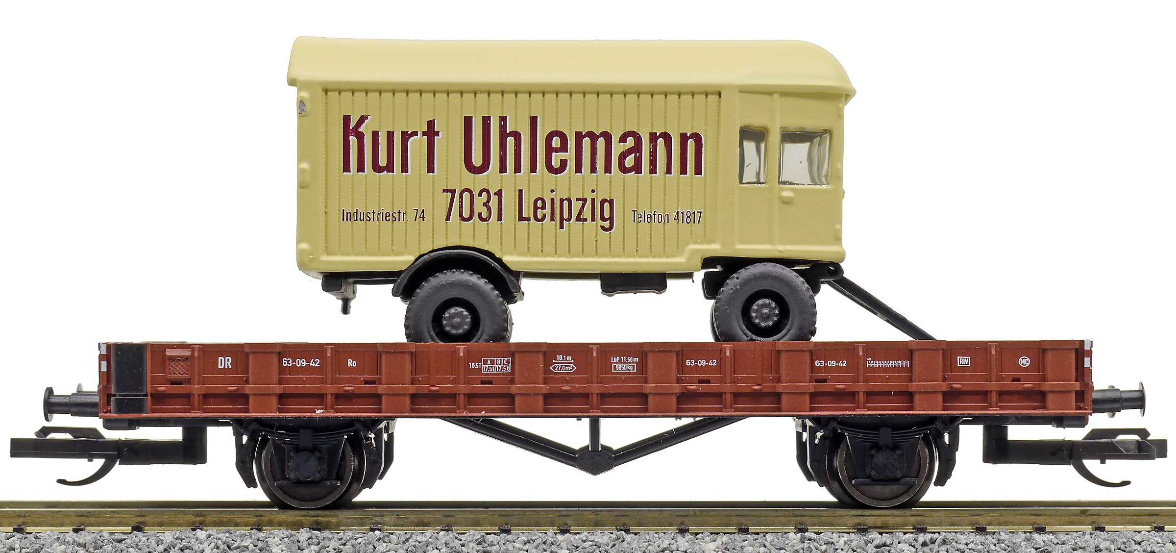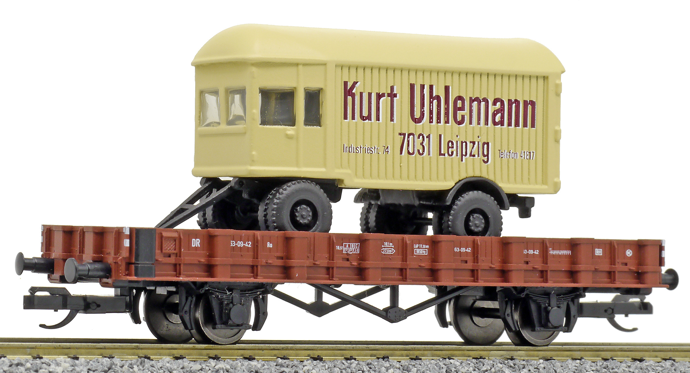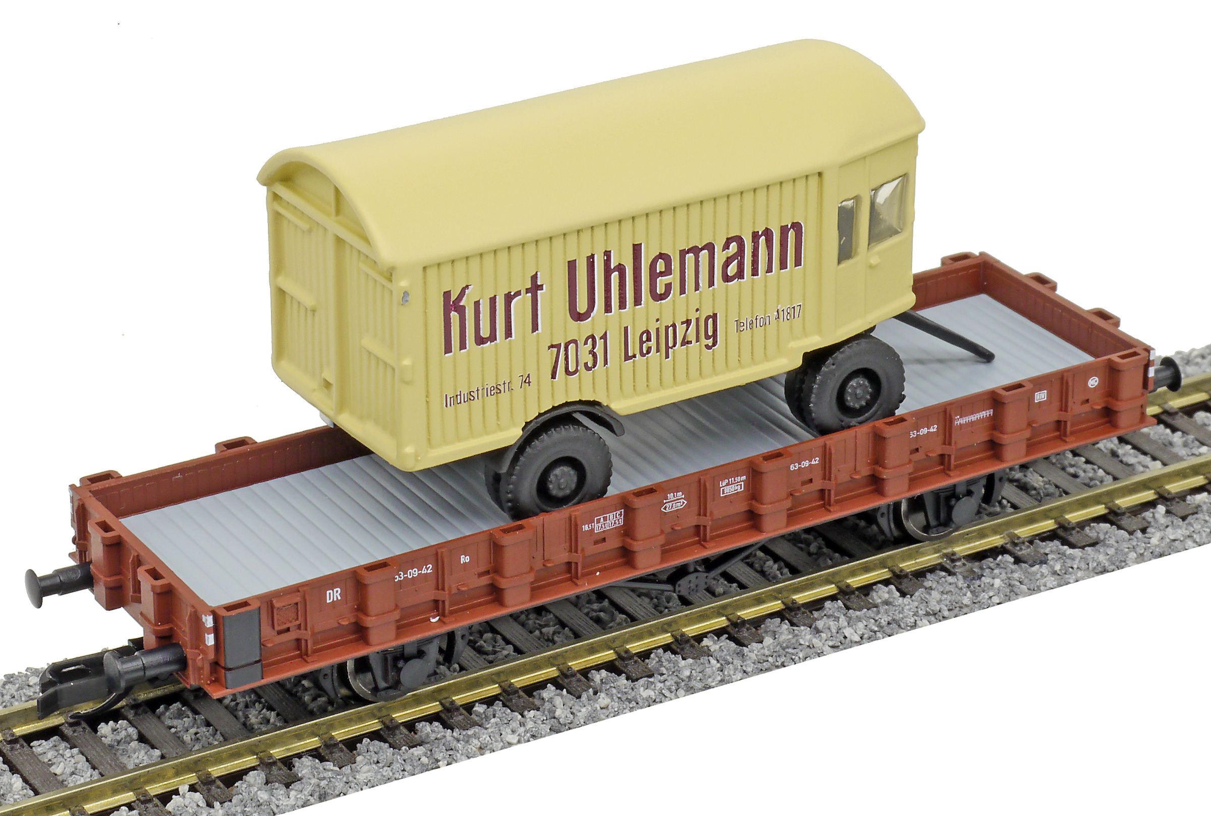 | nízkostěnný vůz červenohnědý s nákladním přívěsem „Kurt Uhlemann“ |