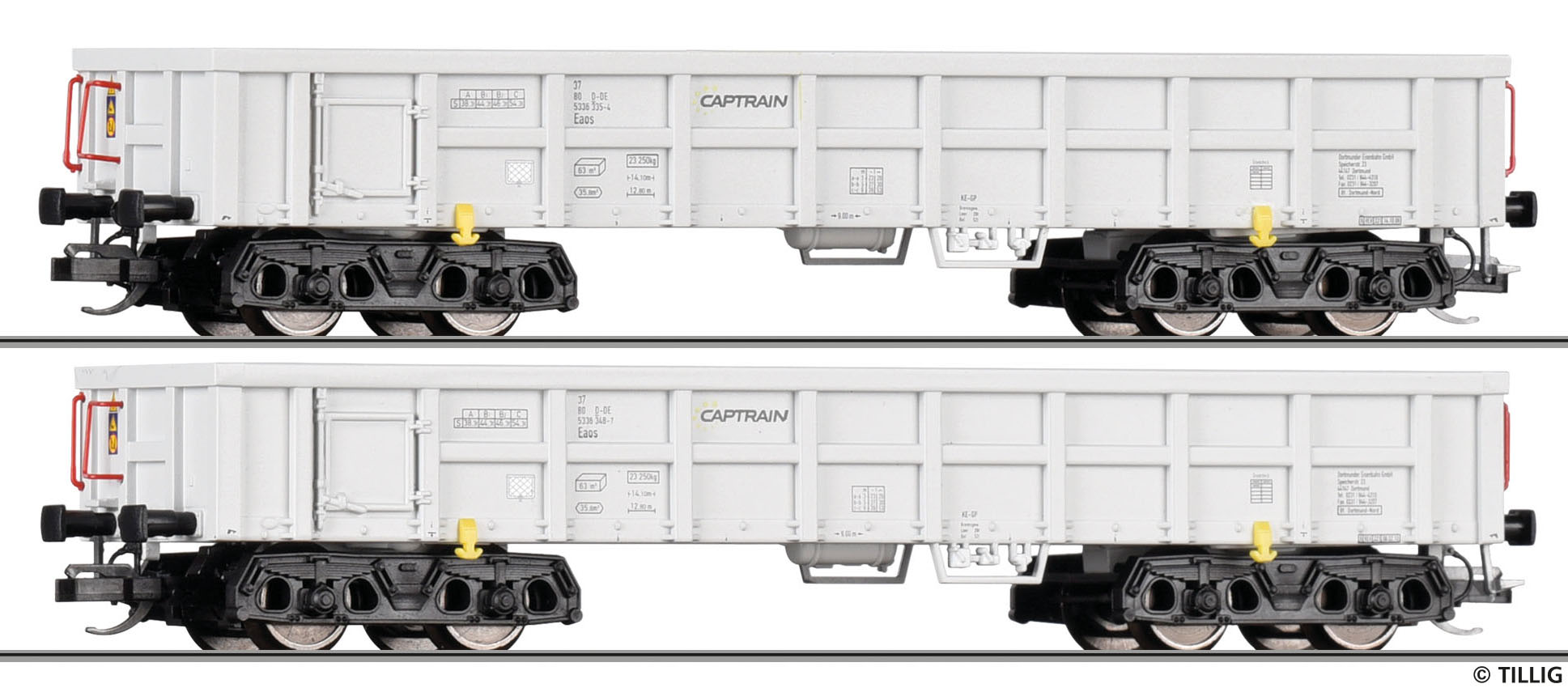 | set dvou otevřených nákladních vozů s nákladem šrotu |