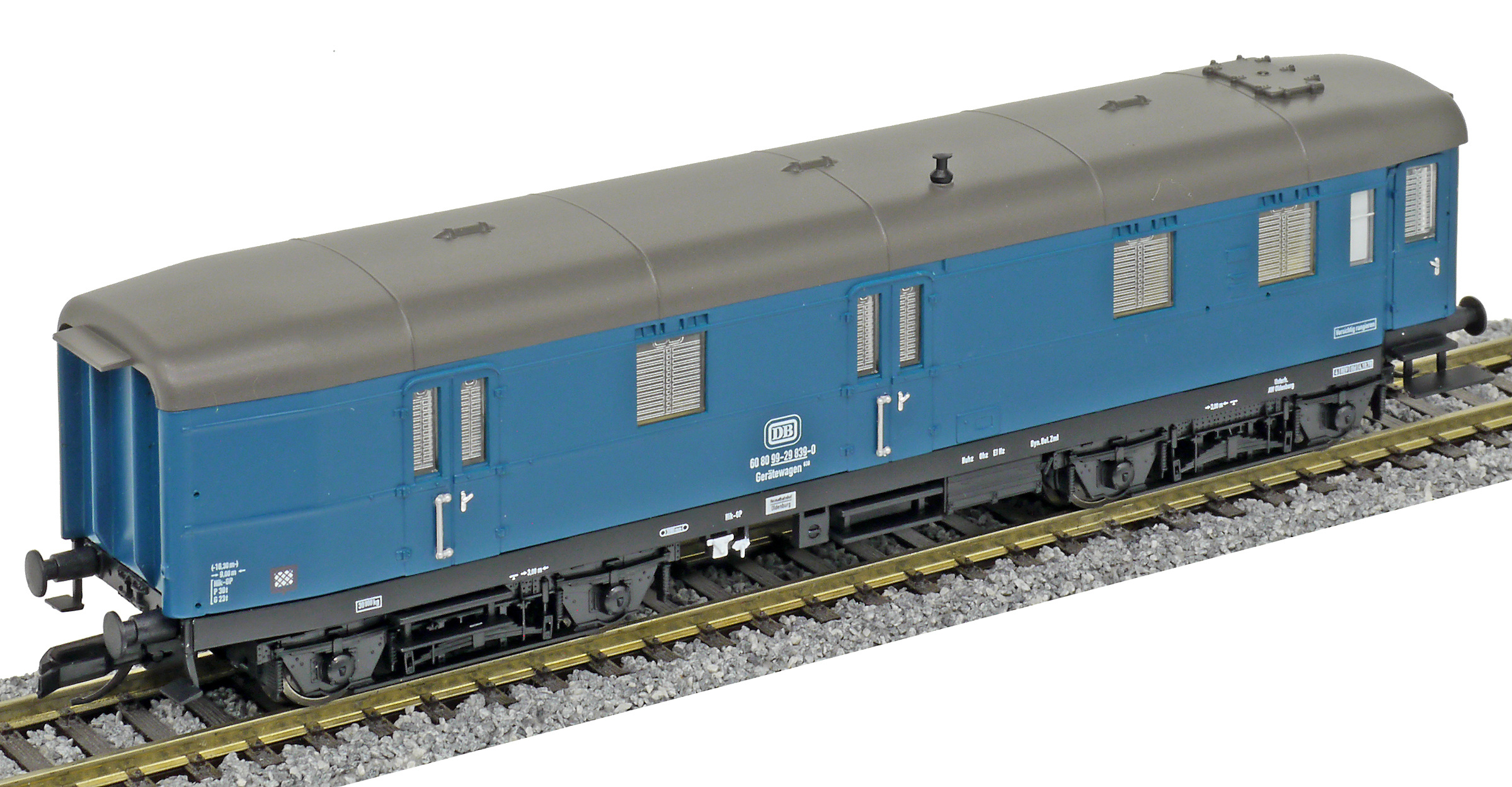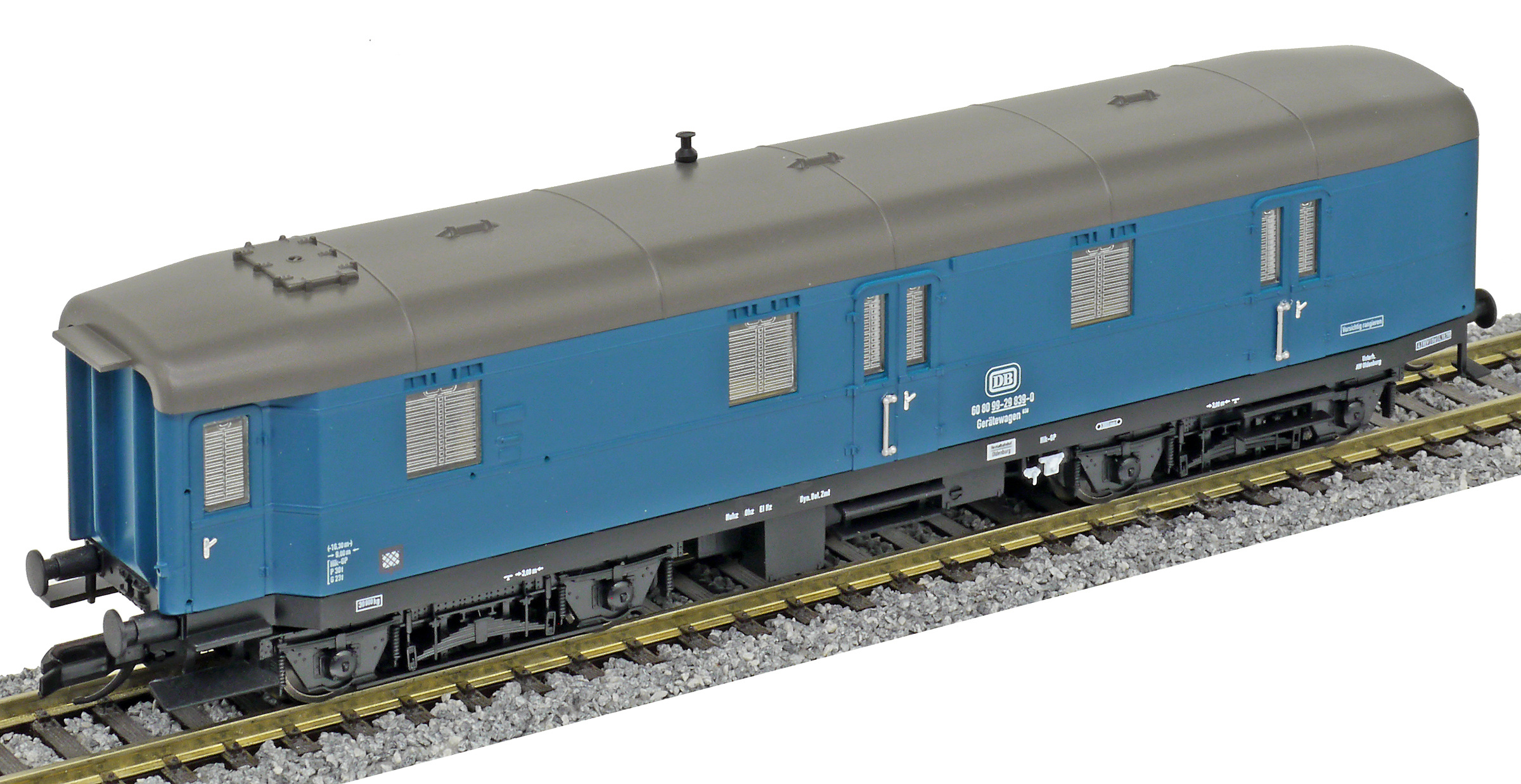 | vůz do pracovního vlaku modrý s šedou střechou |