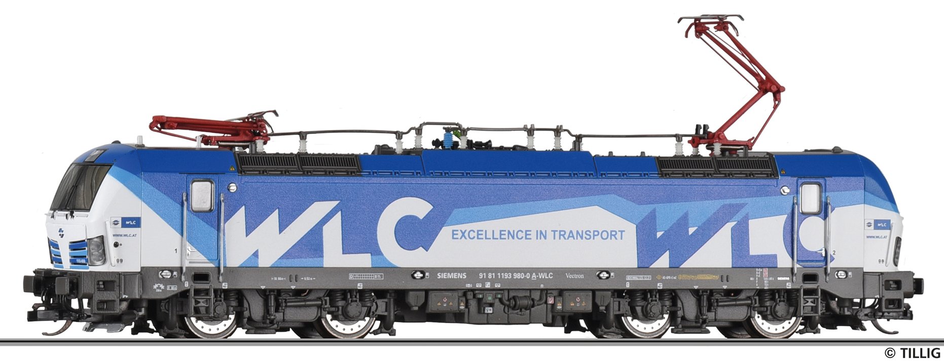 Popis   elektrická lokomotiva v odstínech modré-bílá „Wiener Lokalbahnen Cargo GmbH“