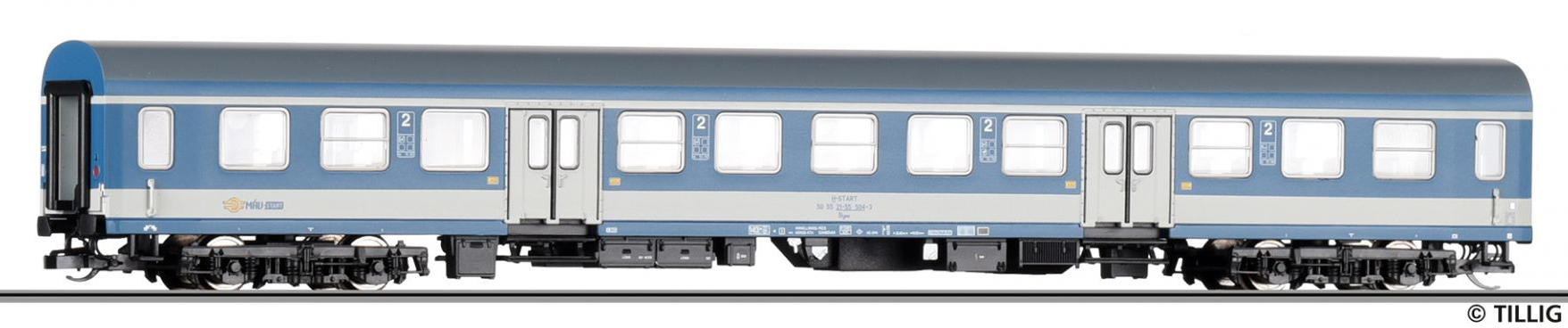 Popis   osobní vůz modrý s šedou střechou a bílým pásem 2. tř.