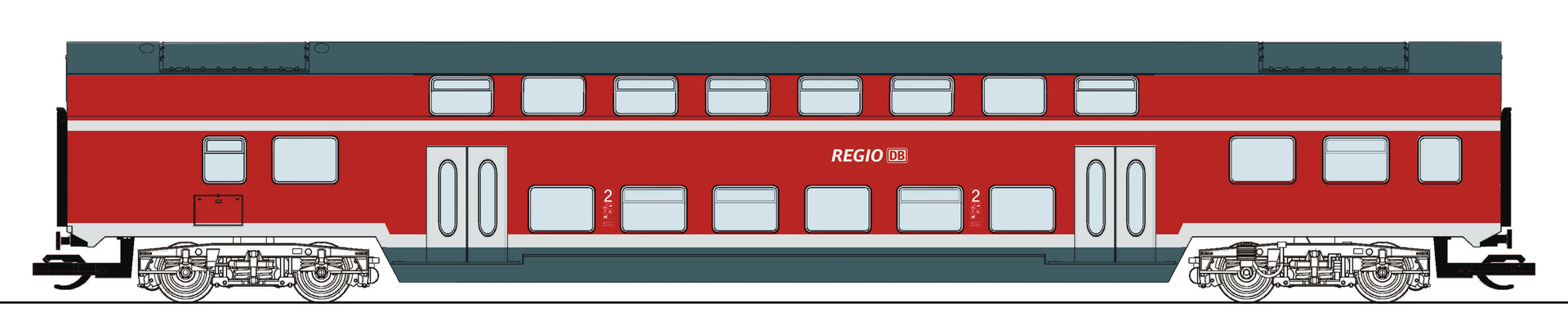 | středový patrový vůz v barvách „Regio DB“ 2. tř. |