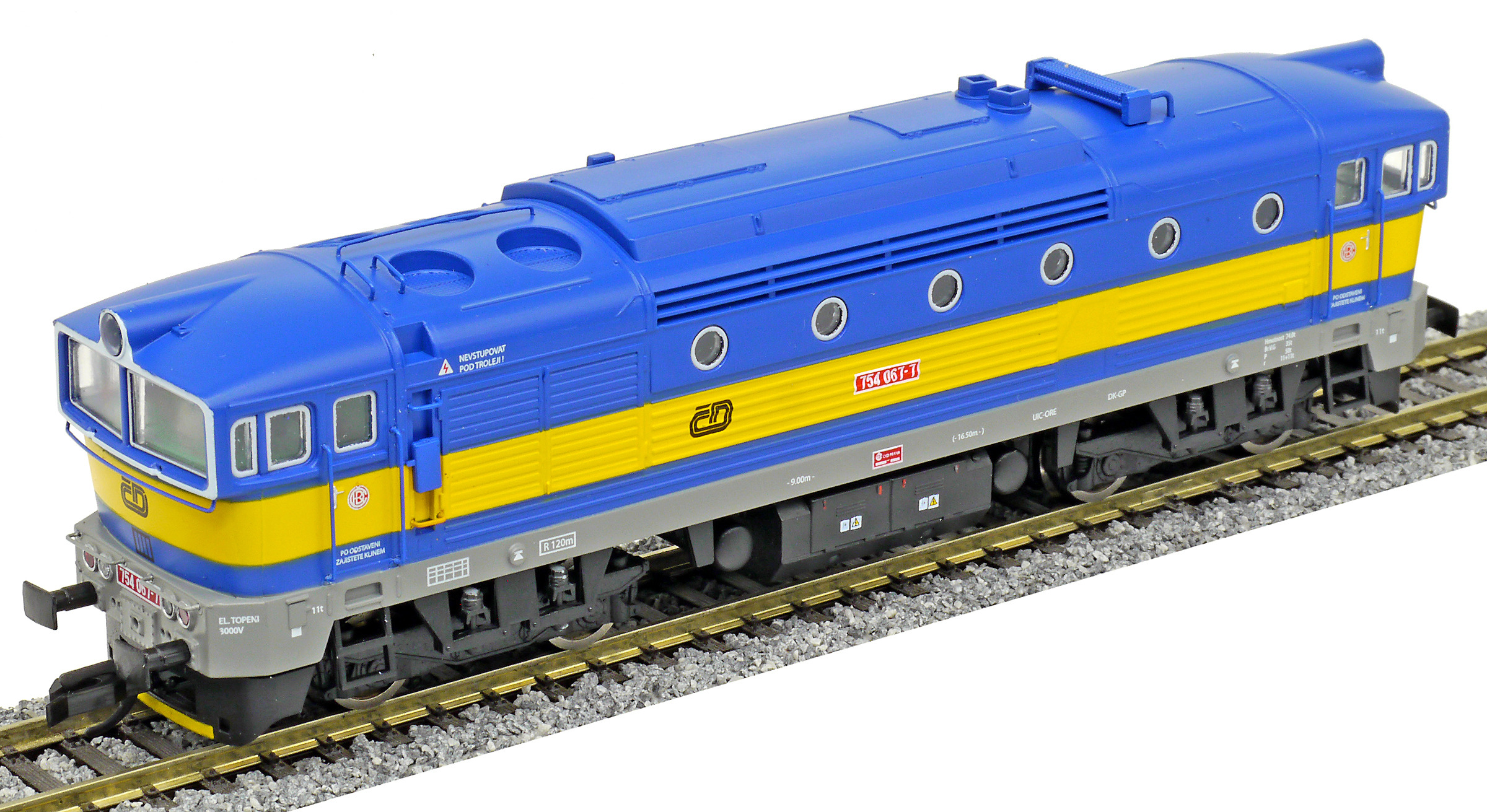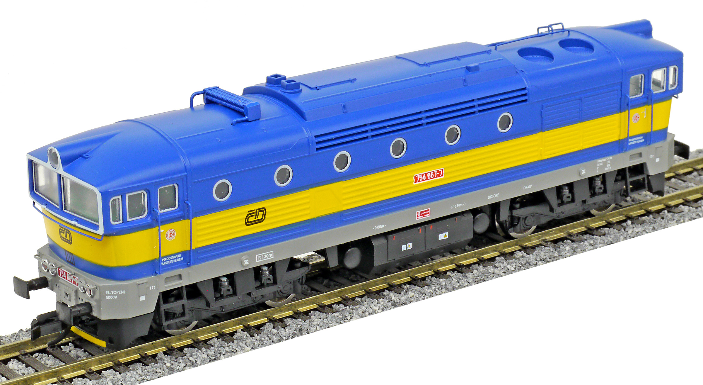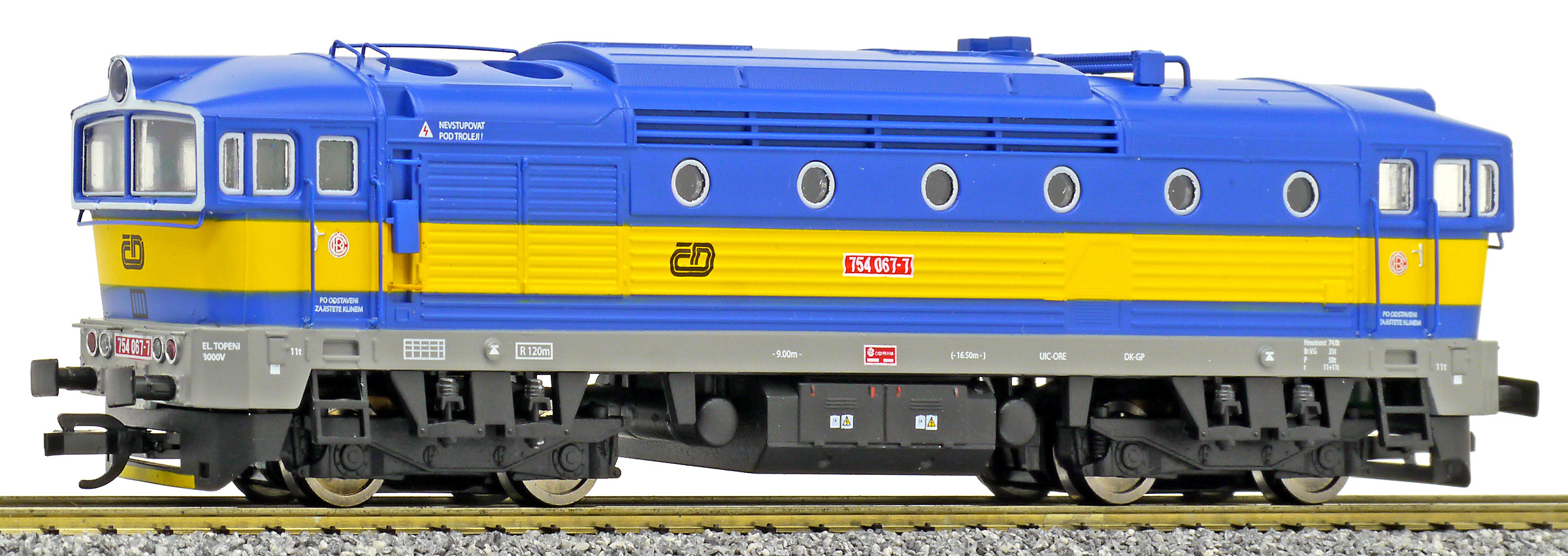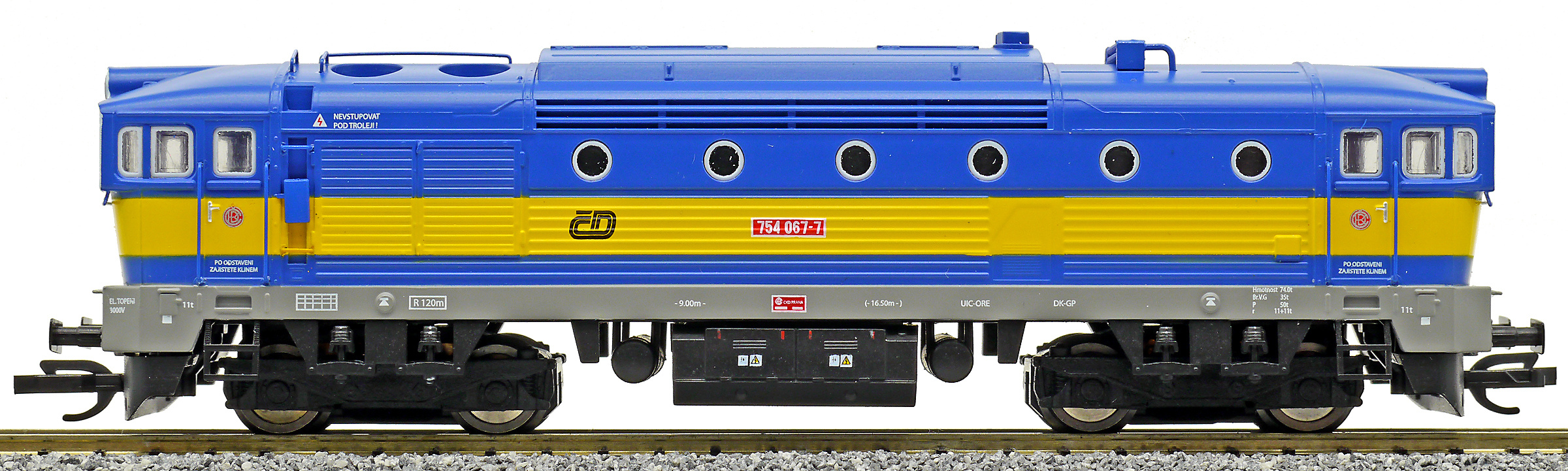 měřítko 1:120 - rozchod kolejí 12 mm osvětlení - 3 reflektory vpředu, 2 světla vzadu, přepínatelné podle směru jízdy 4 hnané nápravy 0 bandážovaných náprav kinematika krátkého spřáhla (KKK) podle normy NEM 358 digitální rozhraní podle NEM 658 s konektorem PluX16 setrvačník 137 mm - celková délka modelu přes nárazníky 4 - celkový počet náprav nebo rozložení náprav
