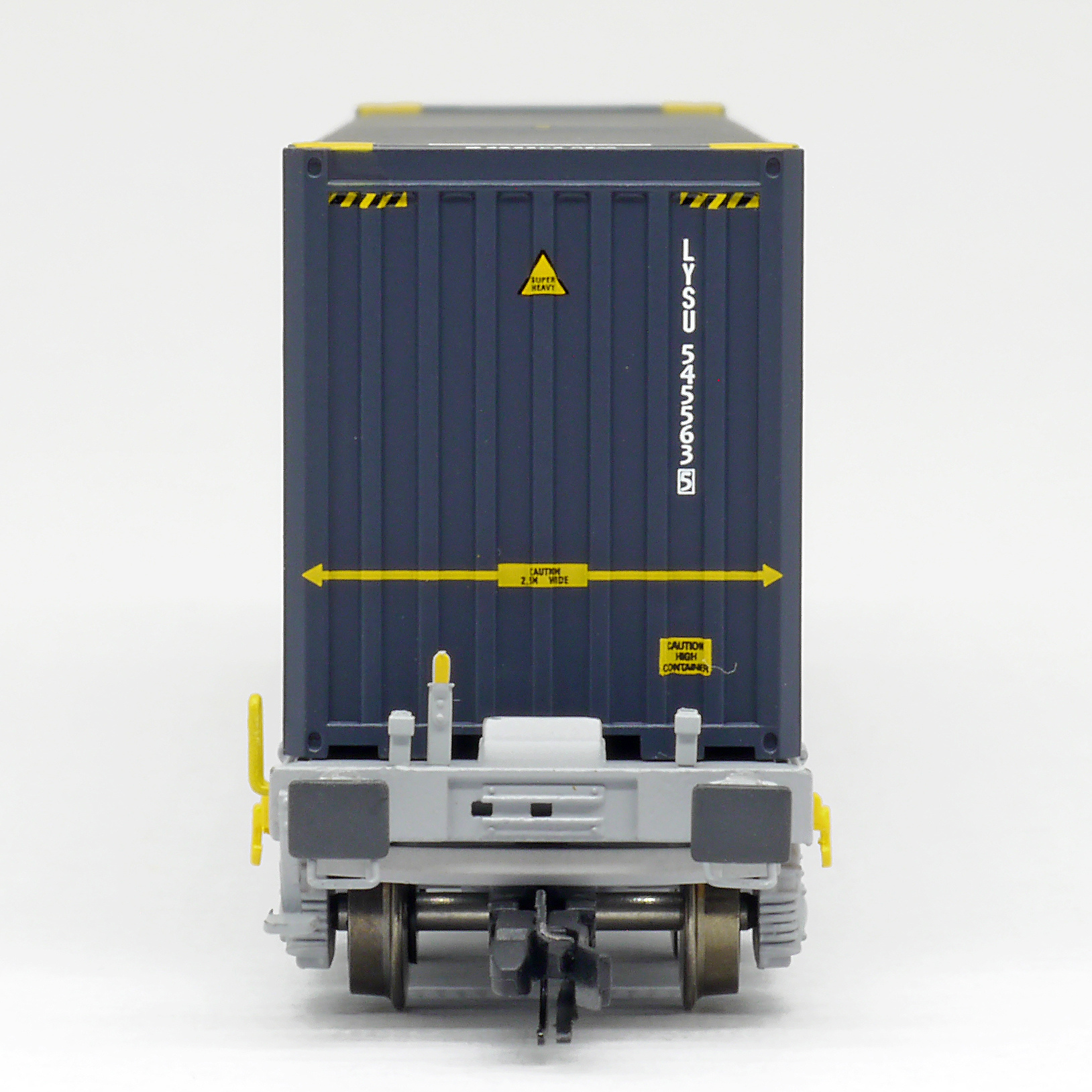 | kontejnerový vůz „IFA” šedý ložený 45' kontejnerem „DFDS” |
