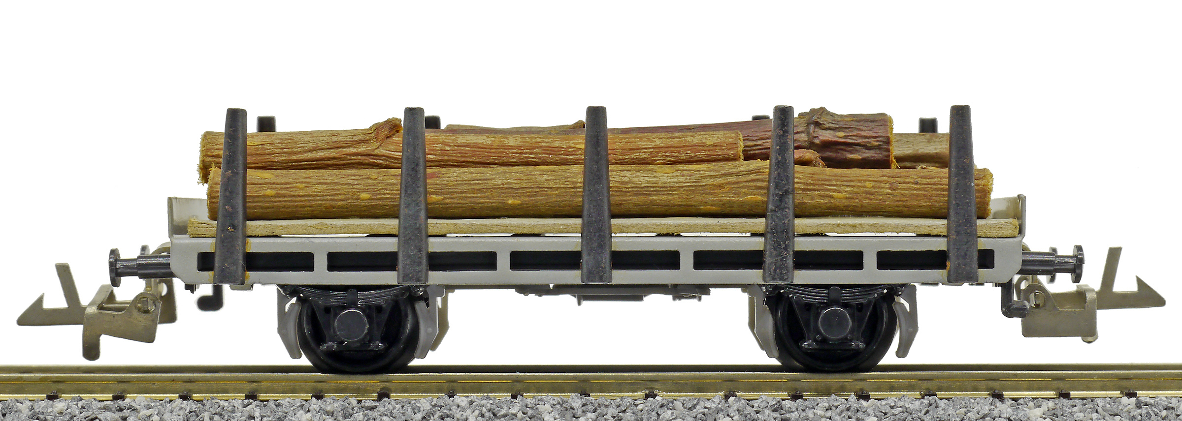 Popis   plošinový nákladní vůz s klanicemi s nákladem kulatiny, bez popisu