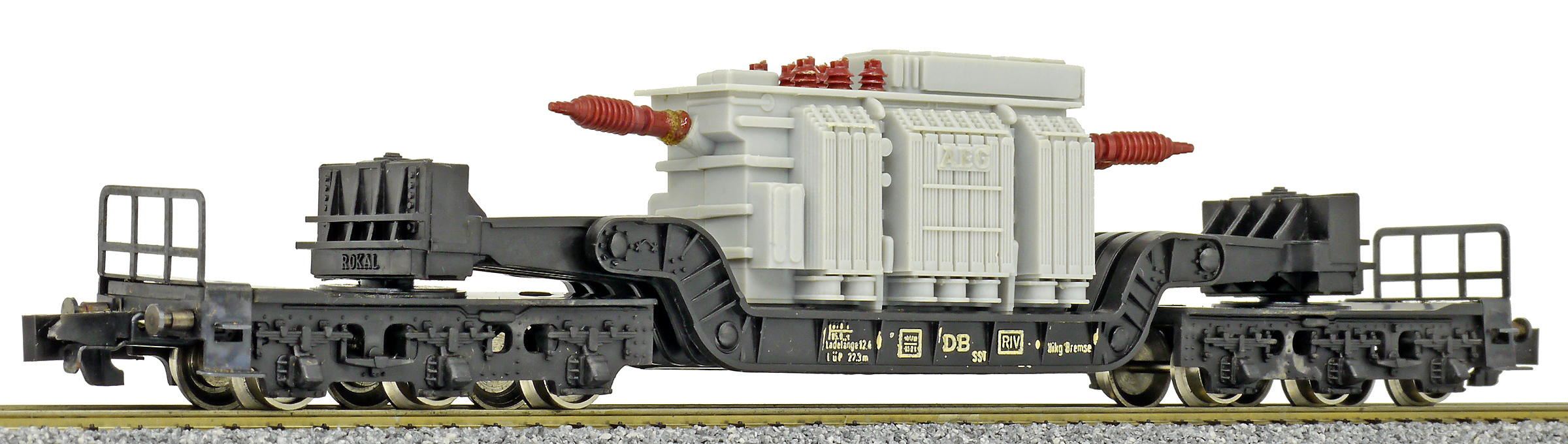 hlubinový nákladní vůz černý ložený transformátorem „AEG“