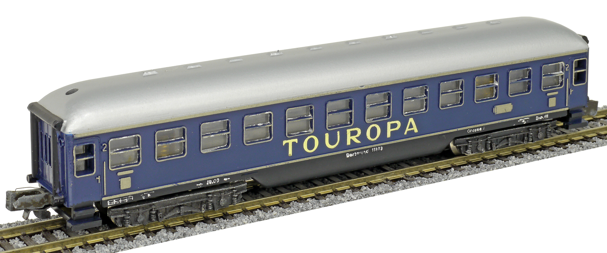 lehátkový vůz modrý s šedou střechou 2. tř. „TOUROPA“