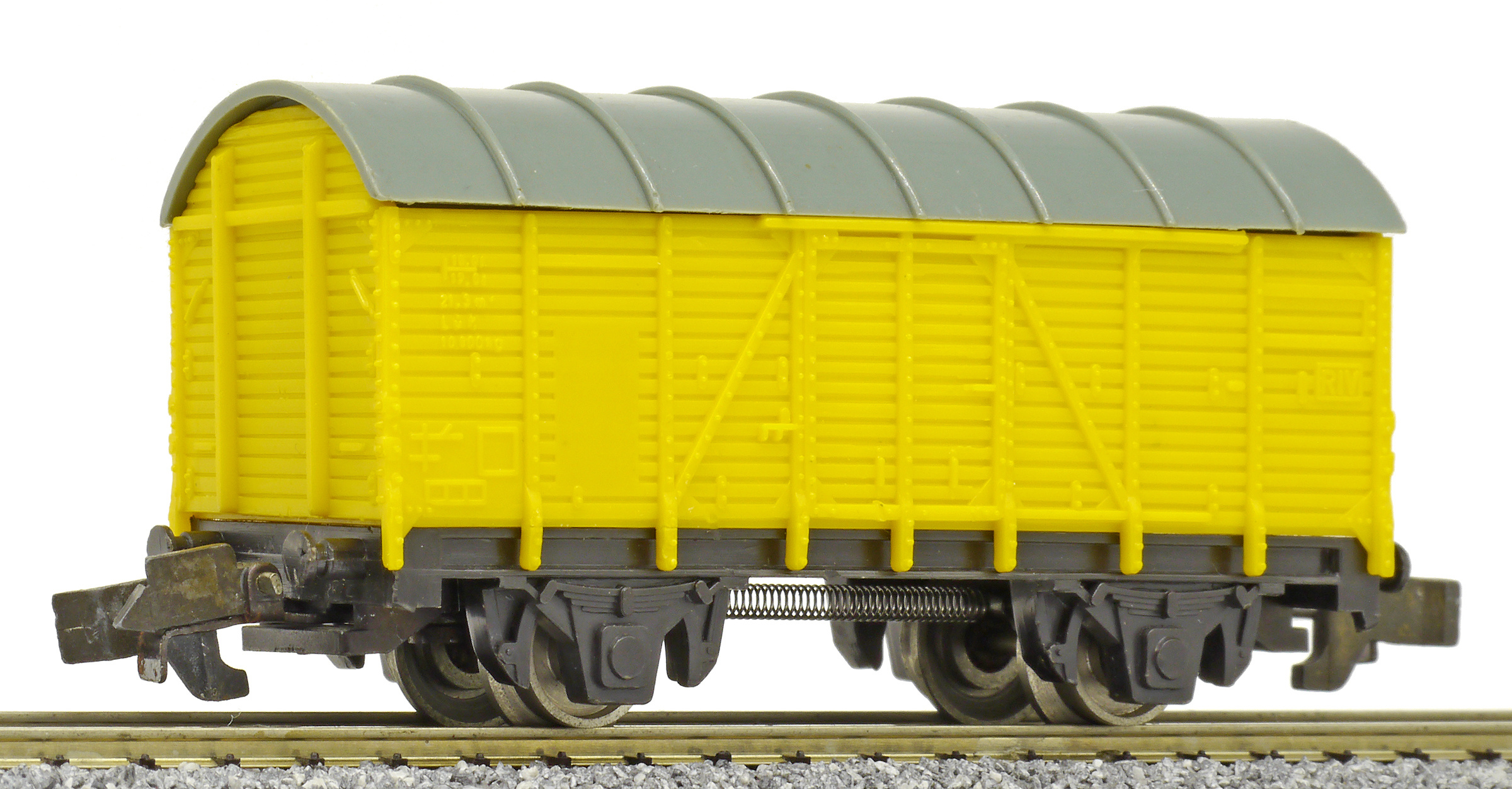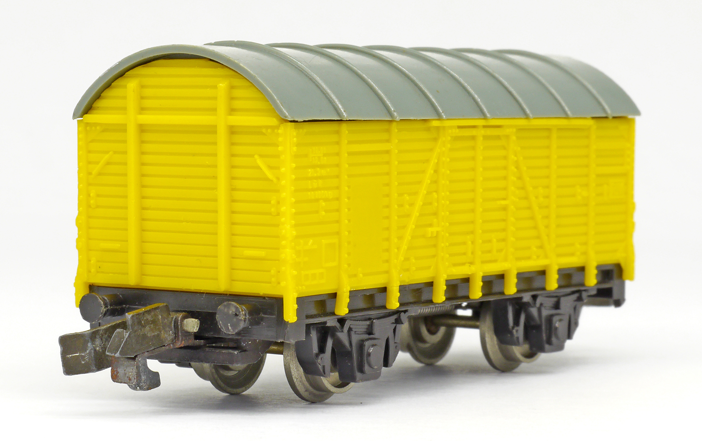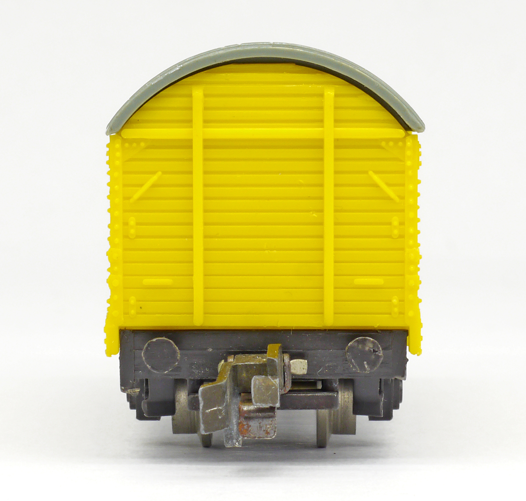 krytý nákladní vůz žlutý s šedou střechou se švy