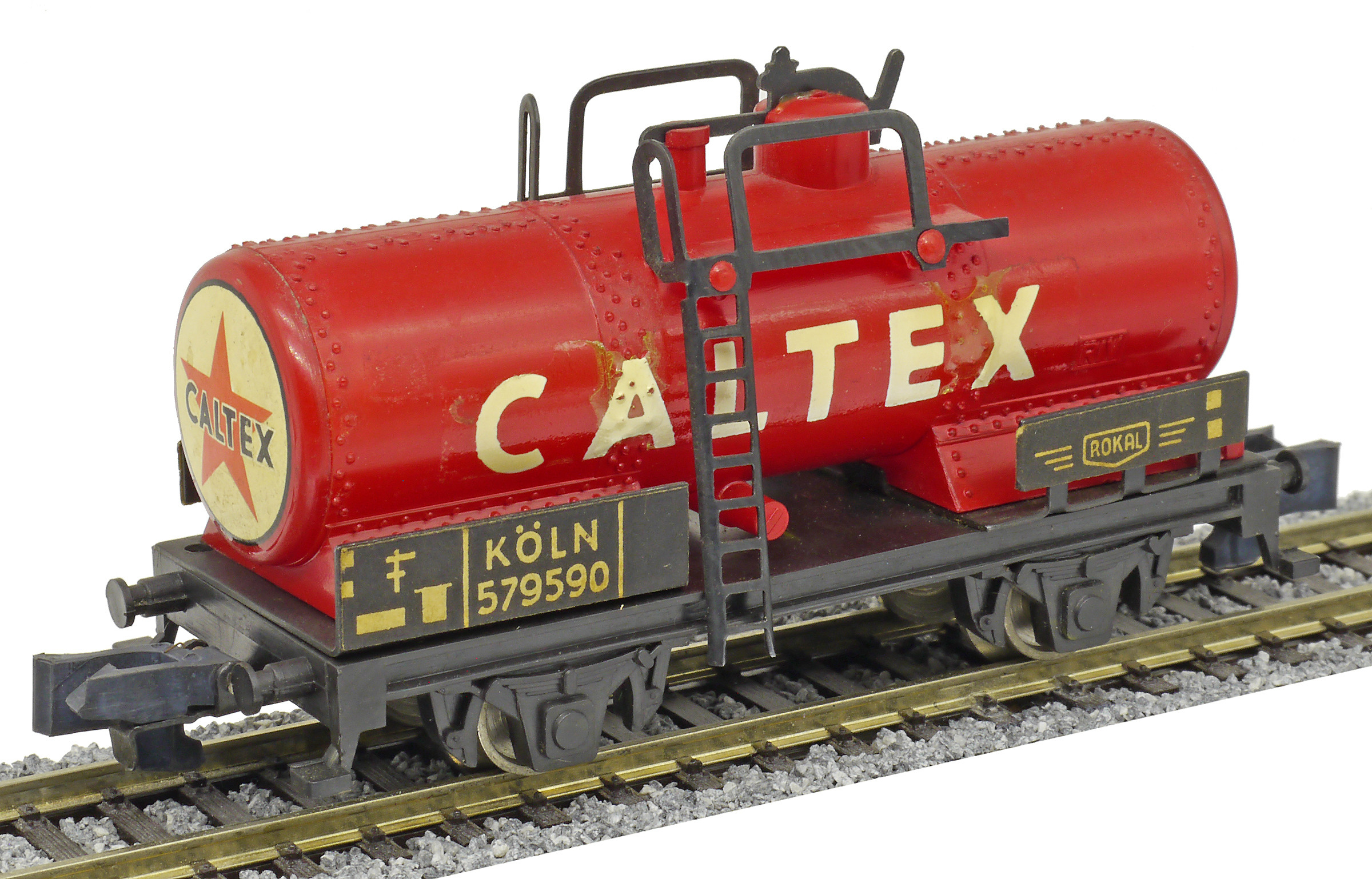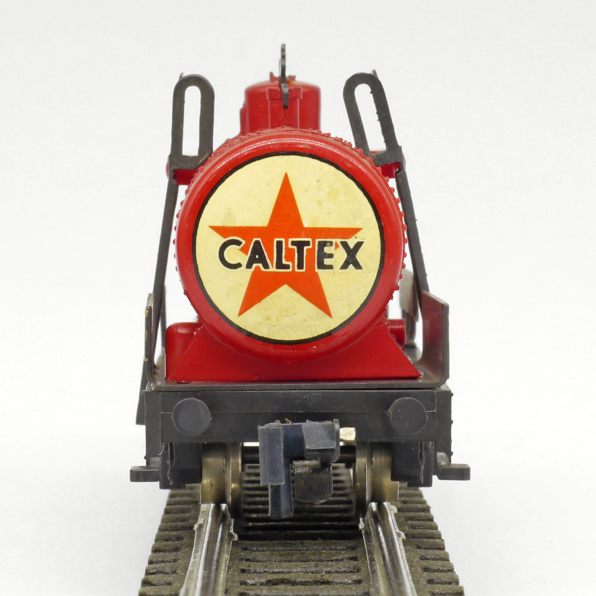 | kotlový vůz červený s nápisem „CALTEX“ |