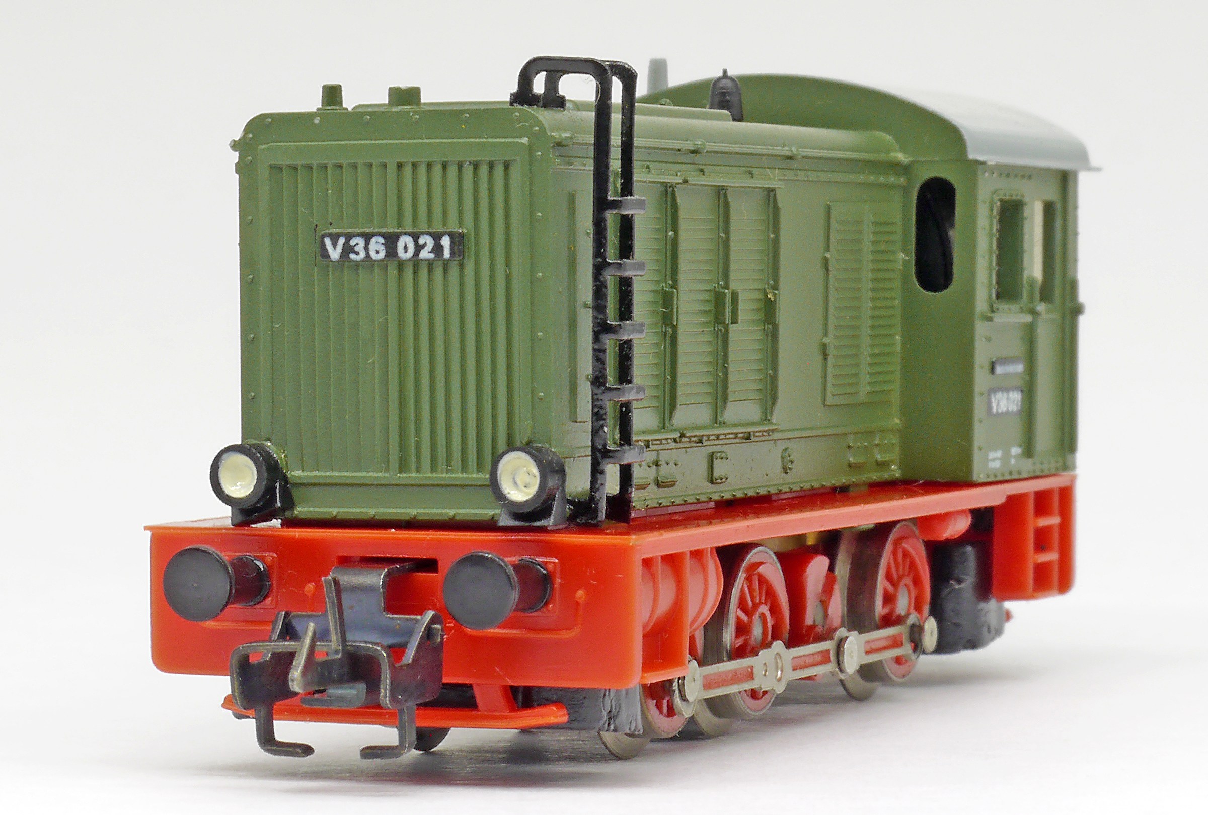 | dieselová lokomotiva zelená s červeným pojezdem |