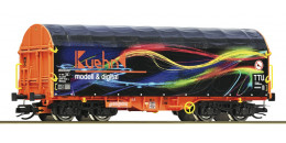 | set dvou plošinových vozů s odsuvnou plachtou s reklamním potiskem „Kuehn“ a „Roco“ |