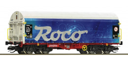 | plošinový nákladní vůz s odsuvnou plachtou s reklamním potiskem „Roco“ |