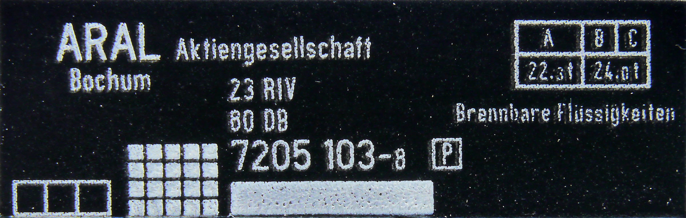 | • 23 80 7205 103-8 | → | Z - kotlový (cisternový) vůz |