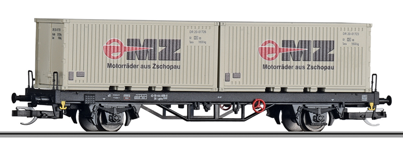 | nákladní plošinový vůz ložený dvěma kontejnery 20' „MZ“ |