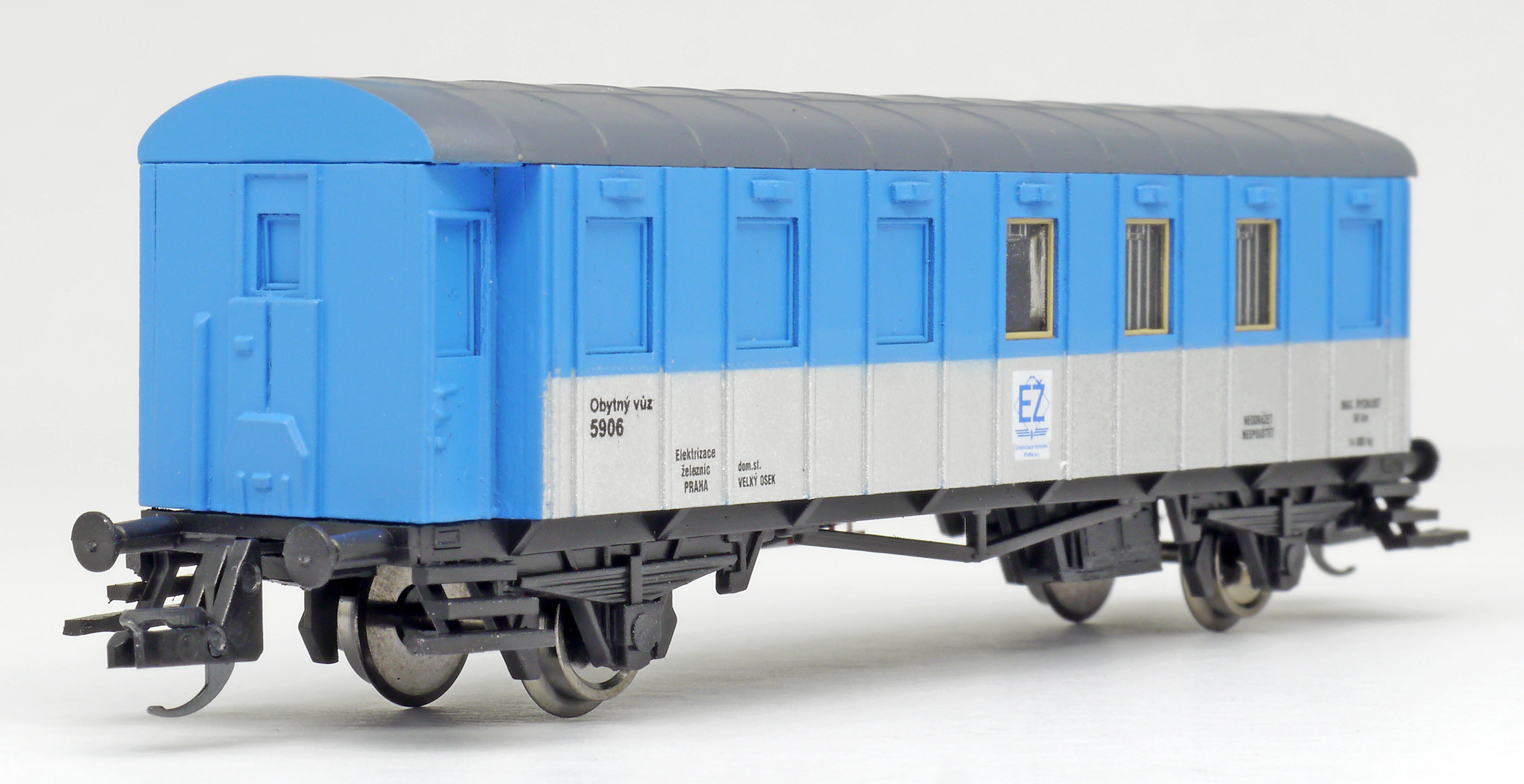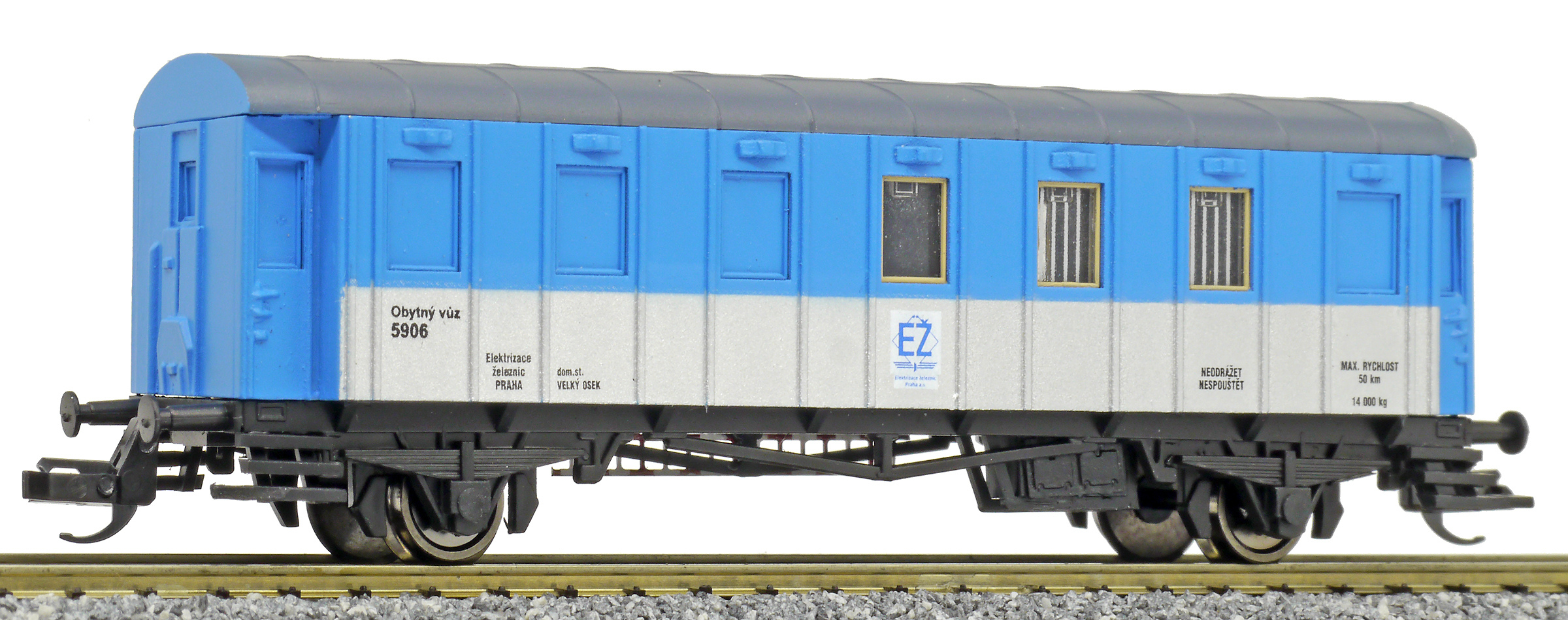 | obytný vůz modrý-stříbrný s šedou střechou „Elektrizace železnic“ |
