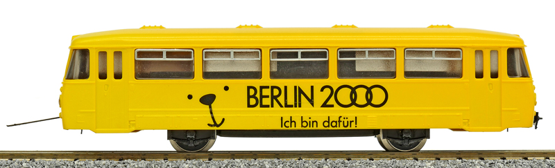 | přívěsný vůz žlutý s olympijským motivem „Berlin 2000 - Ich bin Dafür!“ |
