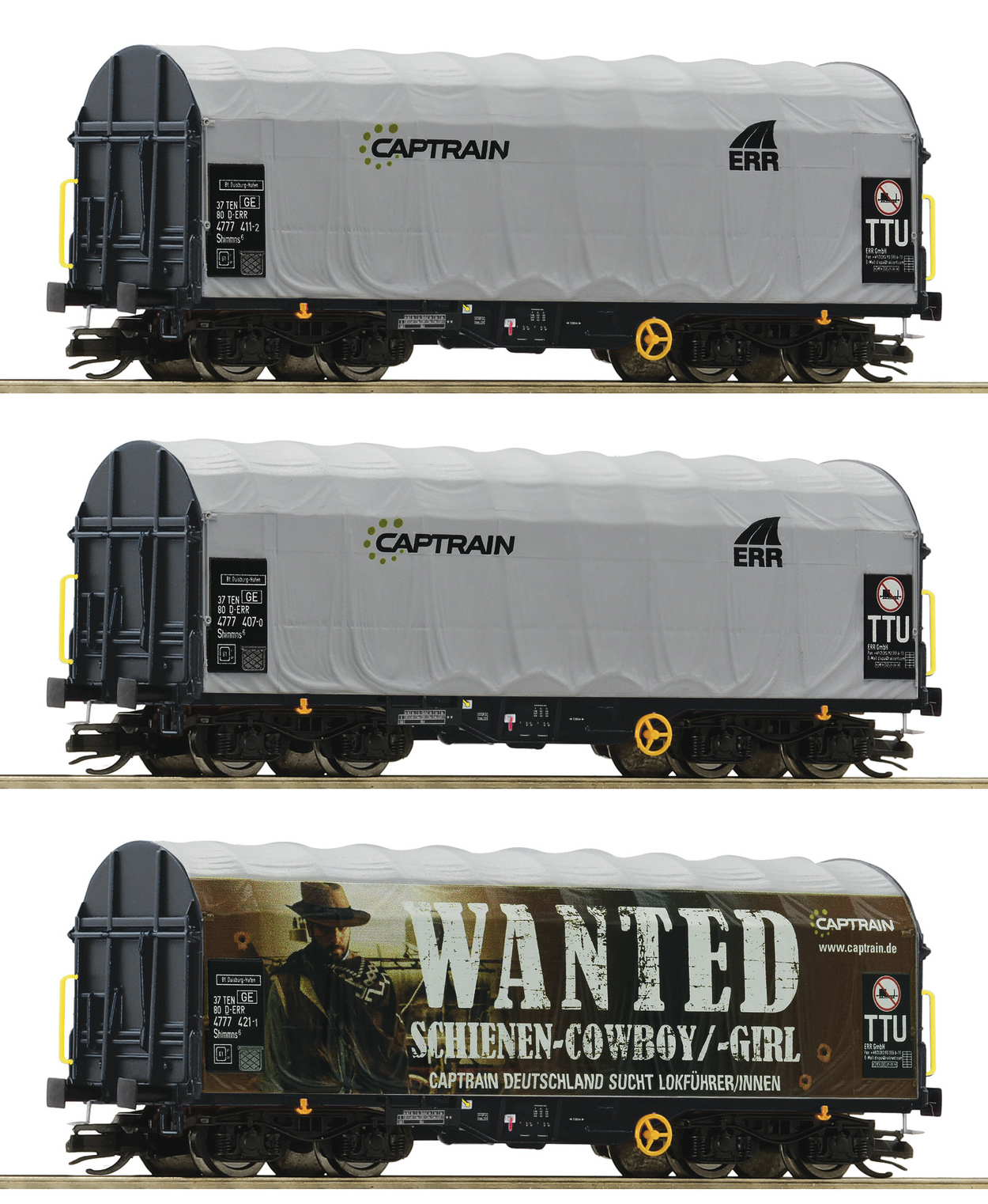 | set tří plošinových vozů s odsuvnou plachtou „Captrain“ |