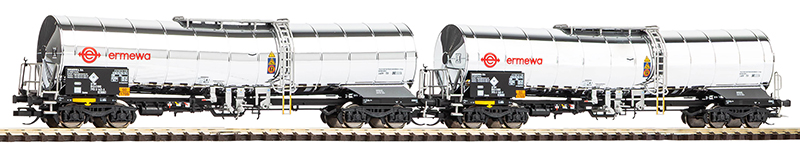 | set dvou kotlových vozů na přepravu chemikálií „ermewa“ |