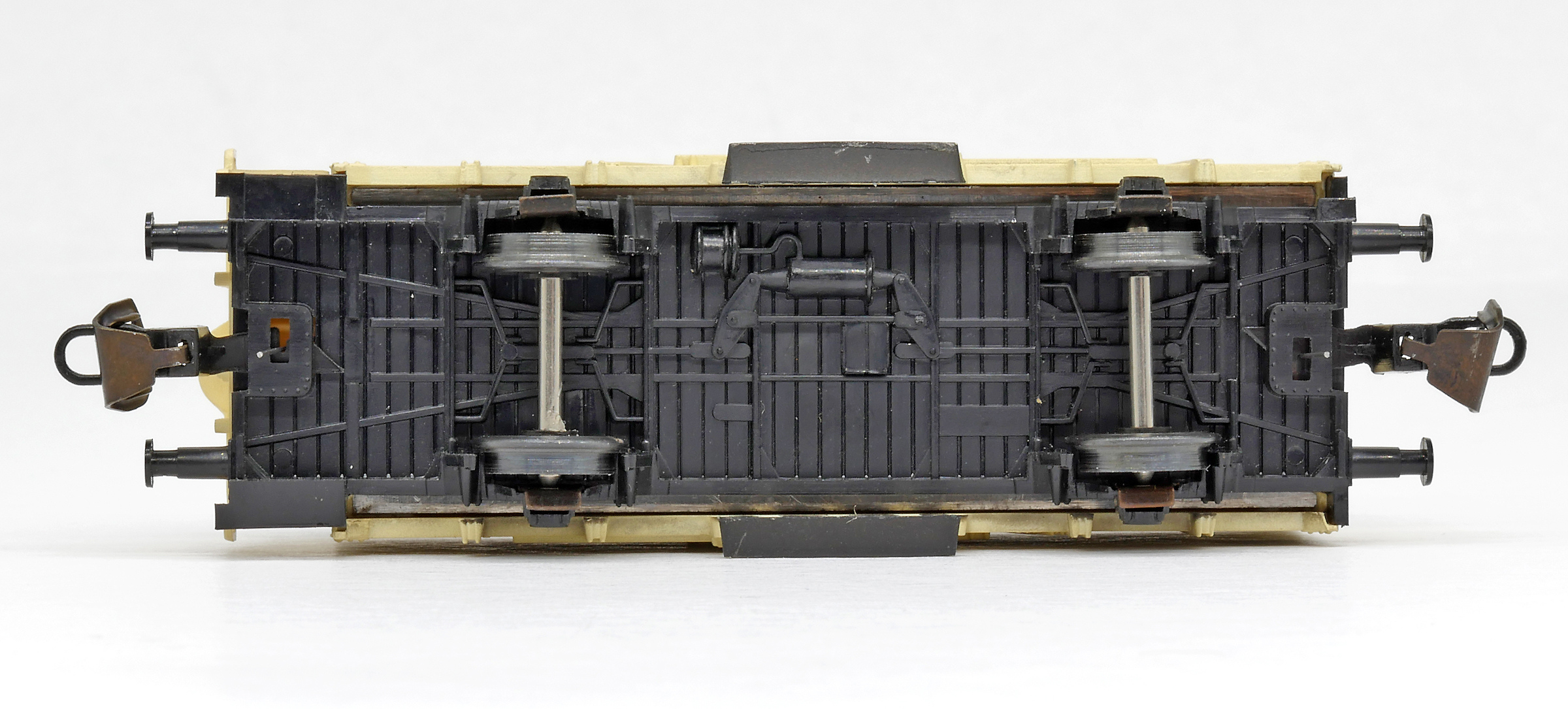 měřítko 1:120 - rozchod kolejí 12 mm nenormované uchycení spřáhla 82 mm - celková délka modelu přes nárazníky 2 - celkový počet náprav nebo rozložení náprav 22 g - hmotnost netto - pouze model