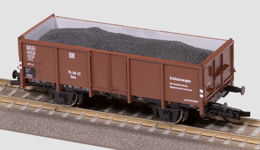 | otevřený nákladní vůz červenohnědý na přepravu strusky s nákladem |