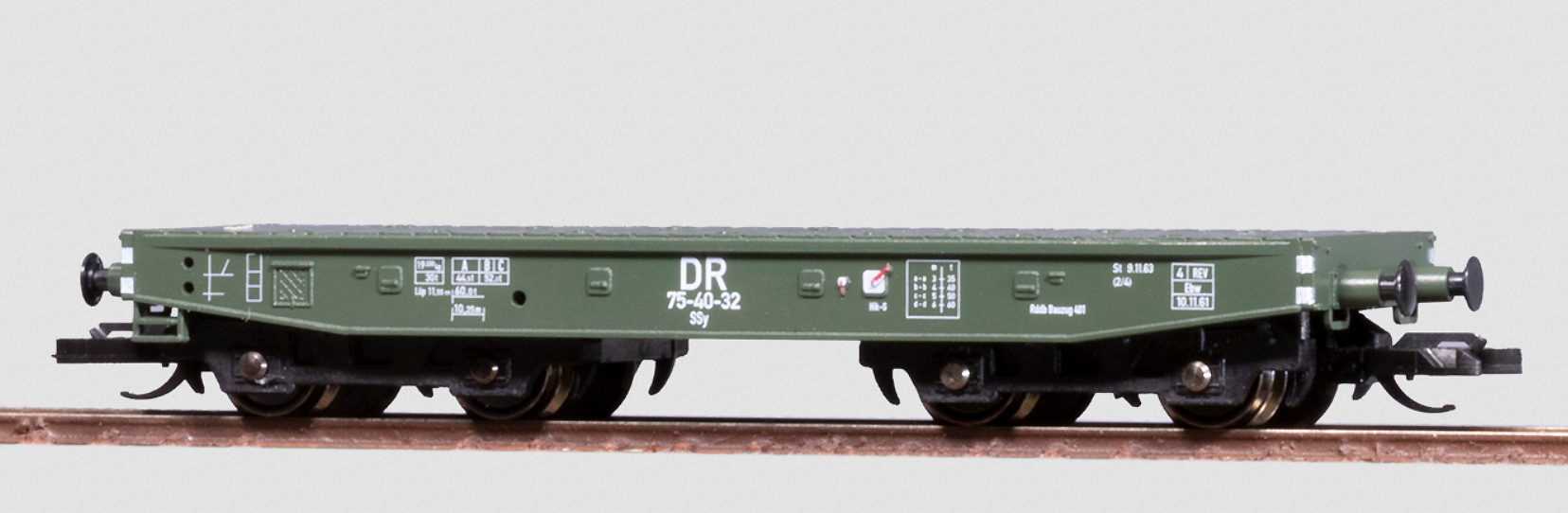 měřítko 1:120 - rozchod kolejí 12 mm kinematika krátkého spřáhla (KKK) podle normy NEM 358 95 mm - celková délka modelu přes nárazníky 4 - celkový počet náprav nebo rozložení náprav