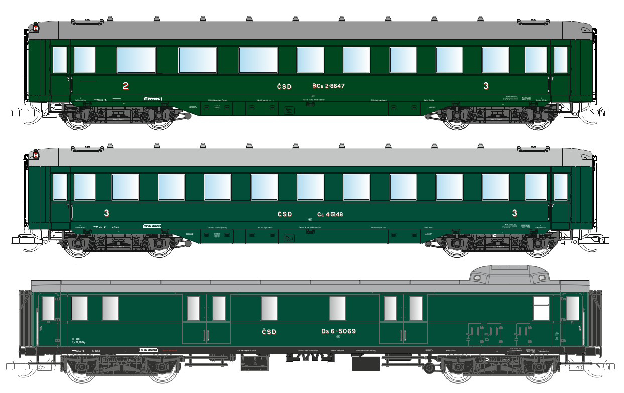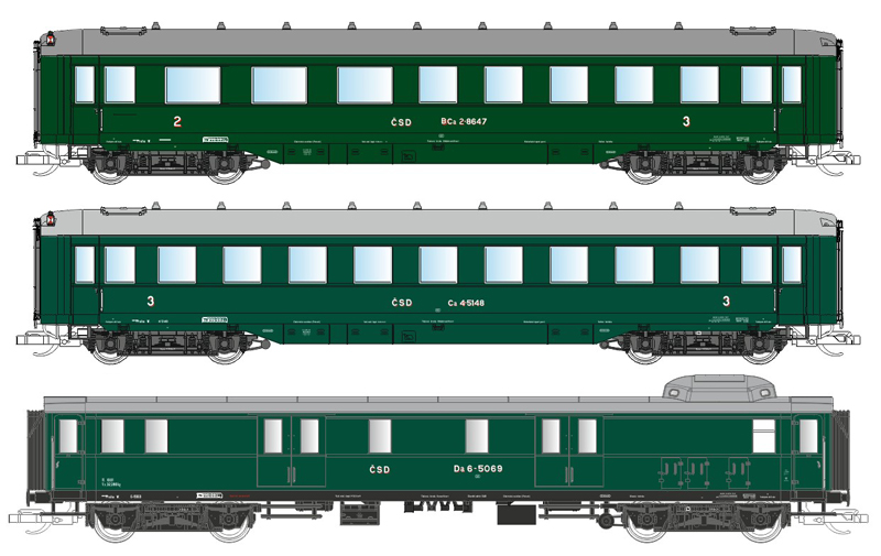| set dvou osobních a jednoho zavazadlového vozu |