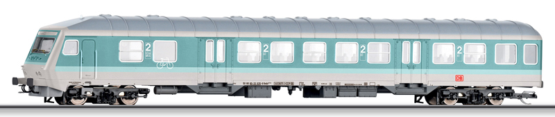 | řídící vůz tyrkysový-bílý s šedou střechou 2. tř. a s oddílem na kola |