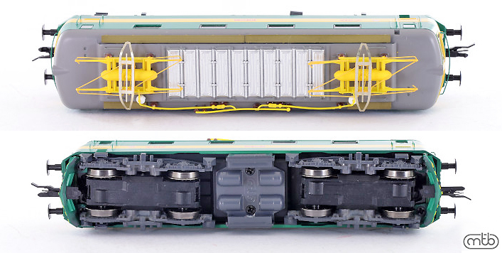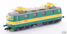 Popis   elektrická lokomotiva zelená s šedou střechou a žlutým výstražným pruhem
