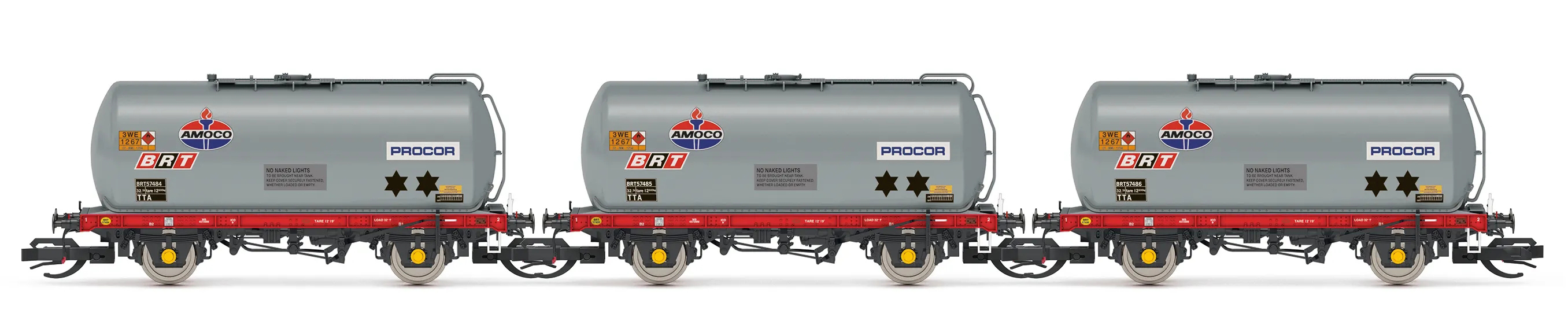| set tří vozů kotlových vozů s logem „Amoco“ |