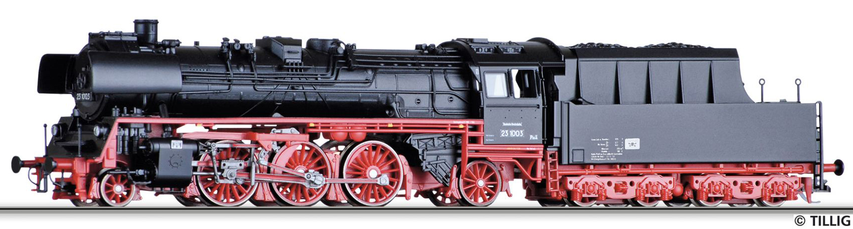 Kód   502258  [Lokomotivy] → [Parní] → [BR 23] → 502258: parní lokomotiva černá s červeným pojezdem a kouřovými plechy, Sonderzug „30 Jahre Tillig“