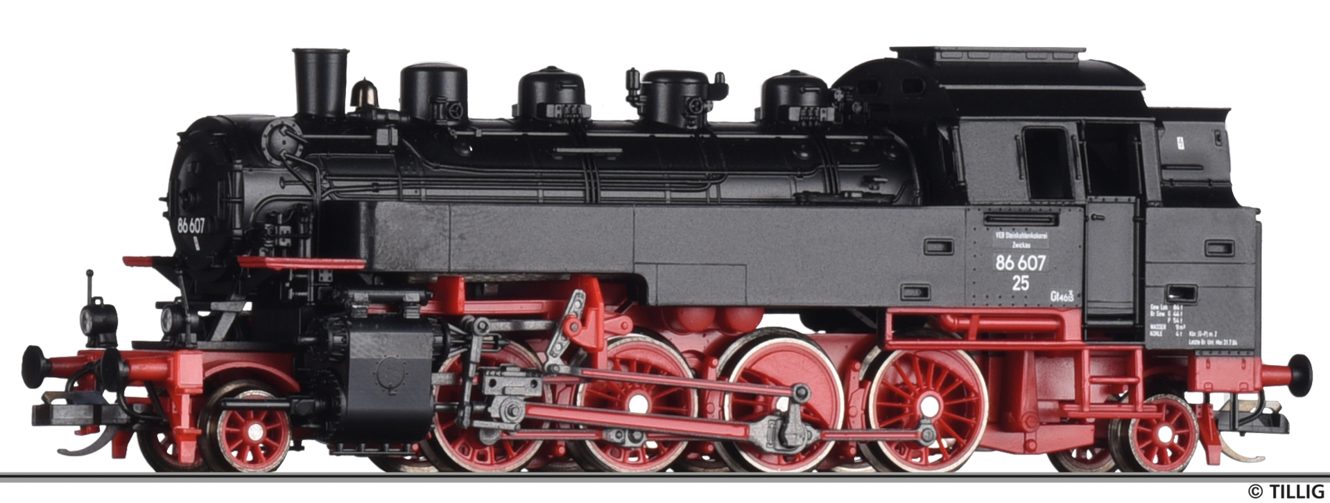 | parní lokomotiva černá s červeným pojezdem VEB Steinkohlekokerei Zwickau |