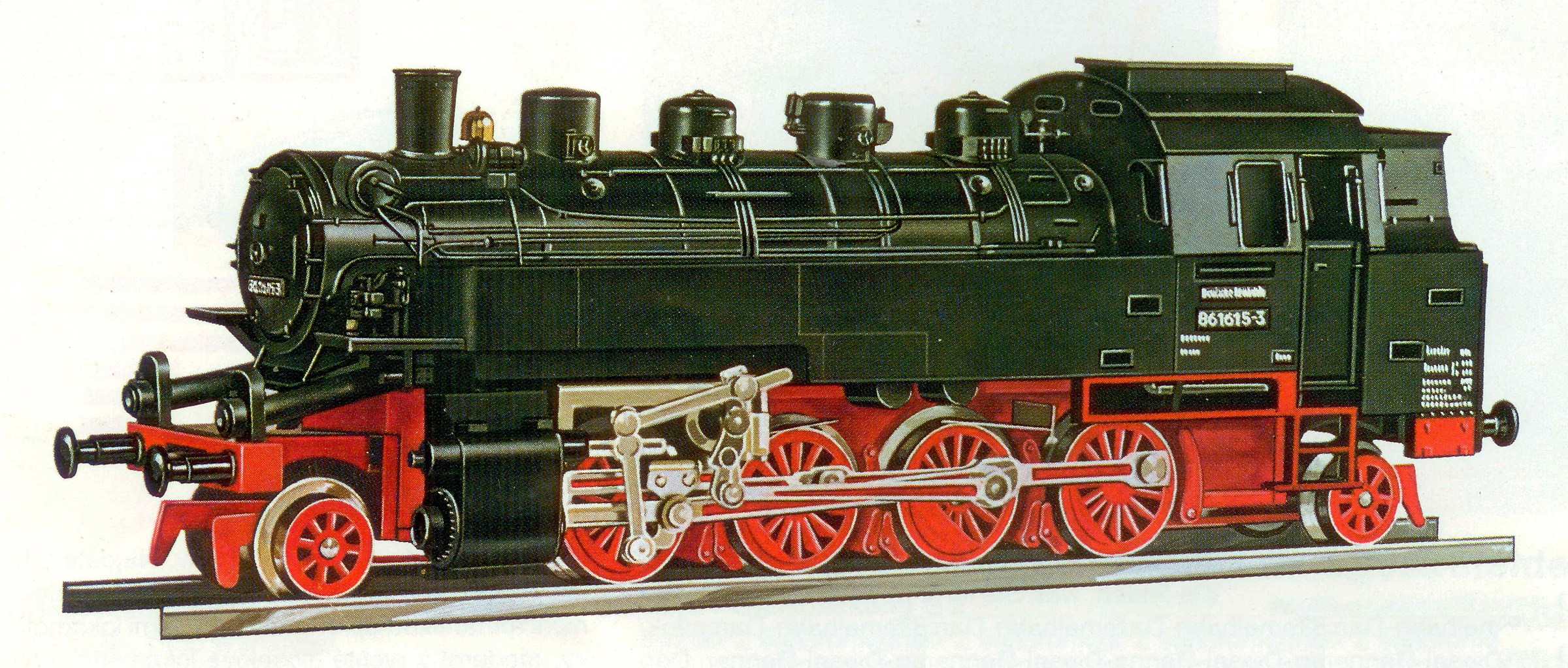 Kód   02183  [Lokomotivy] → [Parní] → [BR 86] → 02183: parní lokomotiva černá s červeným pojezdem