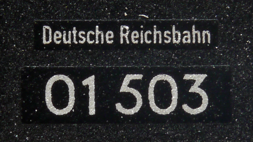 Kód   1018203  [Lokomotivy] → [Parní] → [BR 01] → 1018203: černá s červeným pojezdem, kouřovými plechy a olejovým tendrem BR 01.5