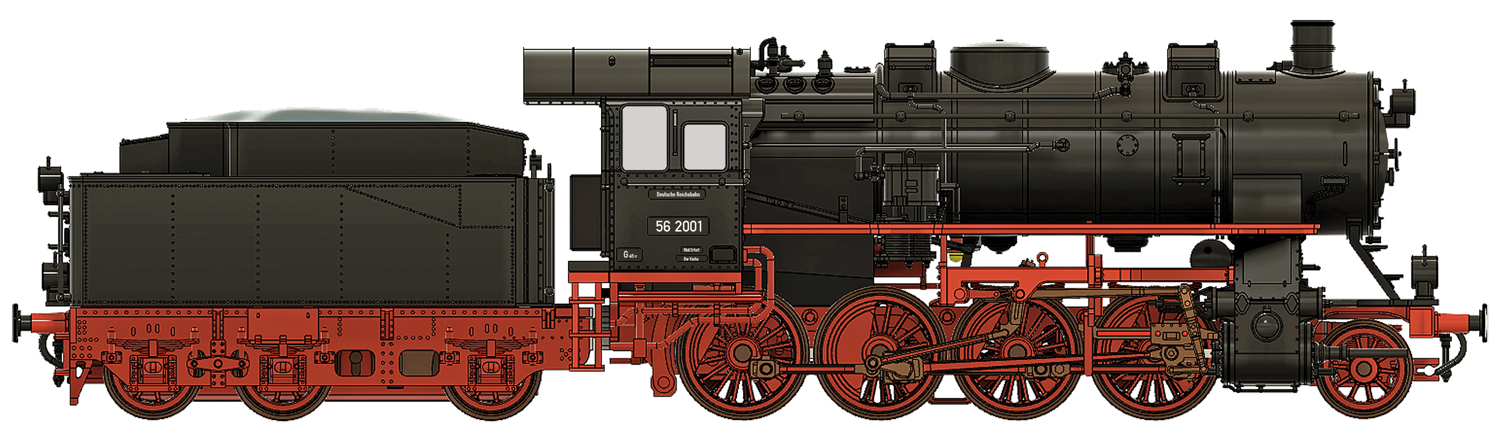 Kód   30001  [Lokomotivy] → [Parní] → [BR 56] → 30001: parní lokomotiva černá s červeným pojezdem