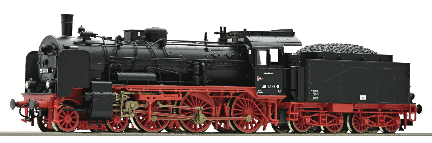 Kód   02028  [Lokomotivy] → [Parní] → [BR 38] → 02028: parní lokomotiva černá s kouřovými plechy, červený pojezd