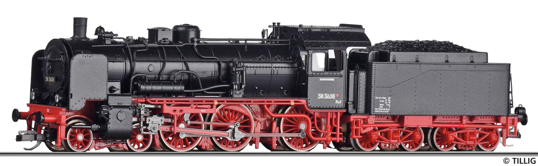 Kód   01615 E   ze SETu   [Lokomotivy] → [Parní] → [BR 38] → 01615 E: černá s červeným pojezdem
