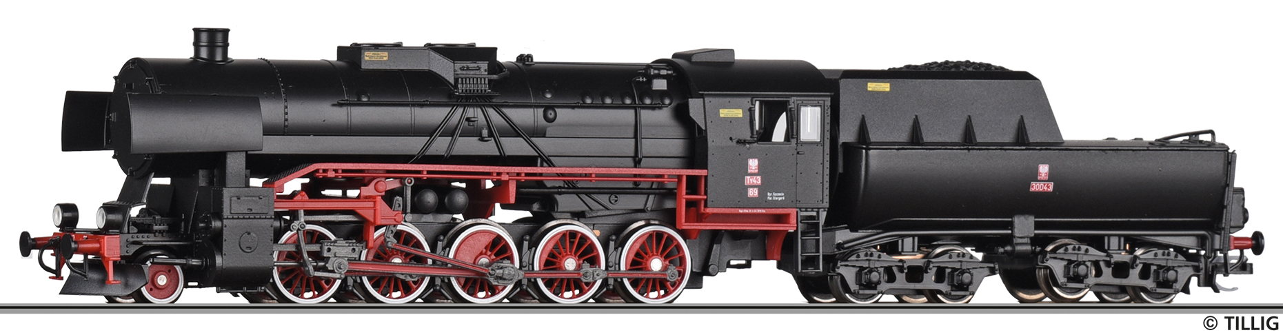 Kód   104/1/H  [Lokomotivy] → [Parní] → [BR 42] → 104/1/H: černá s červeným pojezdem a kouřovými plechy