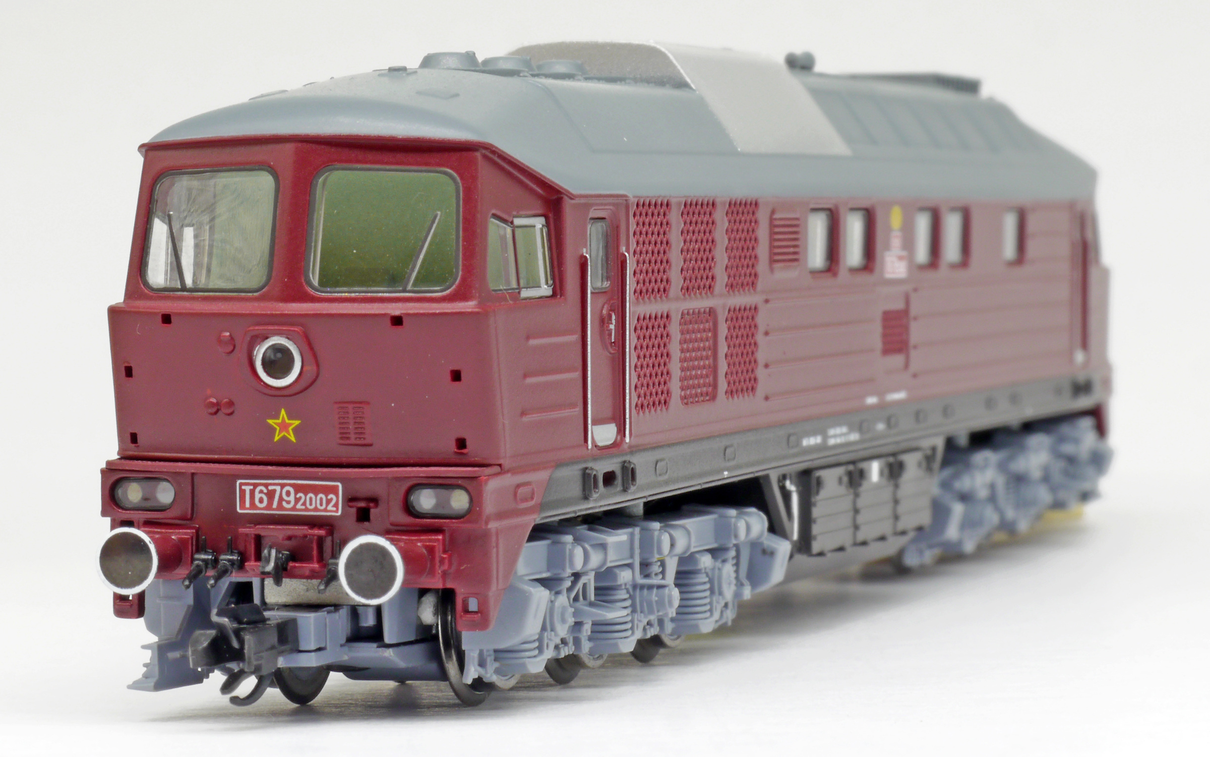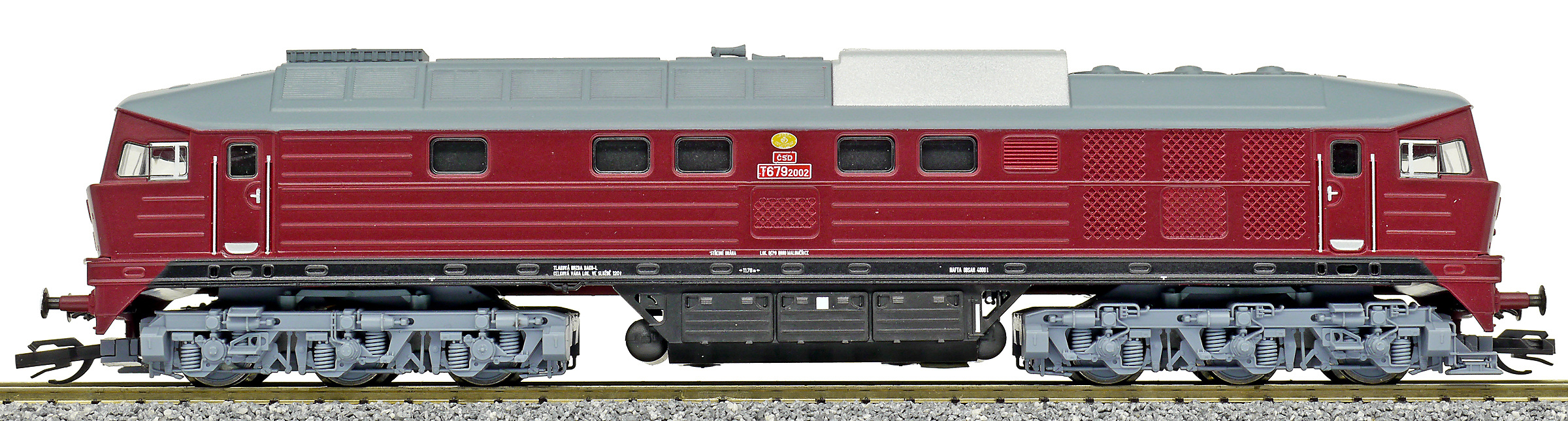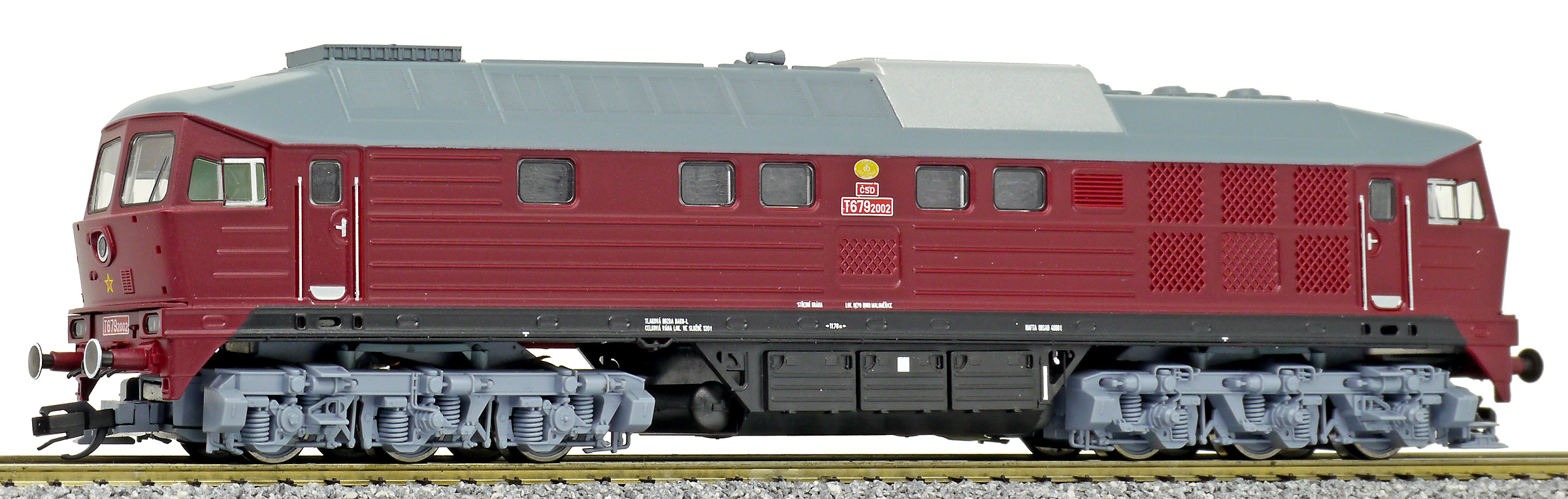 Kód   02641  [Lokomotivy] → [Motorové] → [BR 132] → 02641: dieselová lokomotiva vínově červená s tmavě šedou střechou T 679
