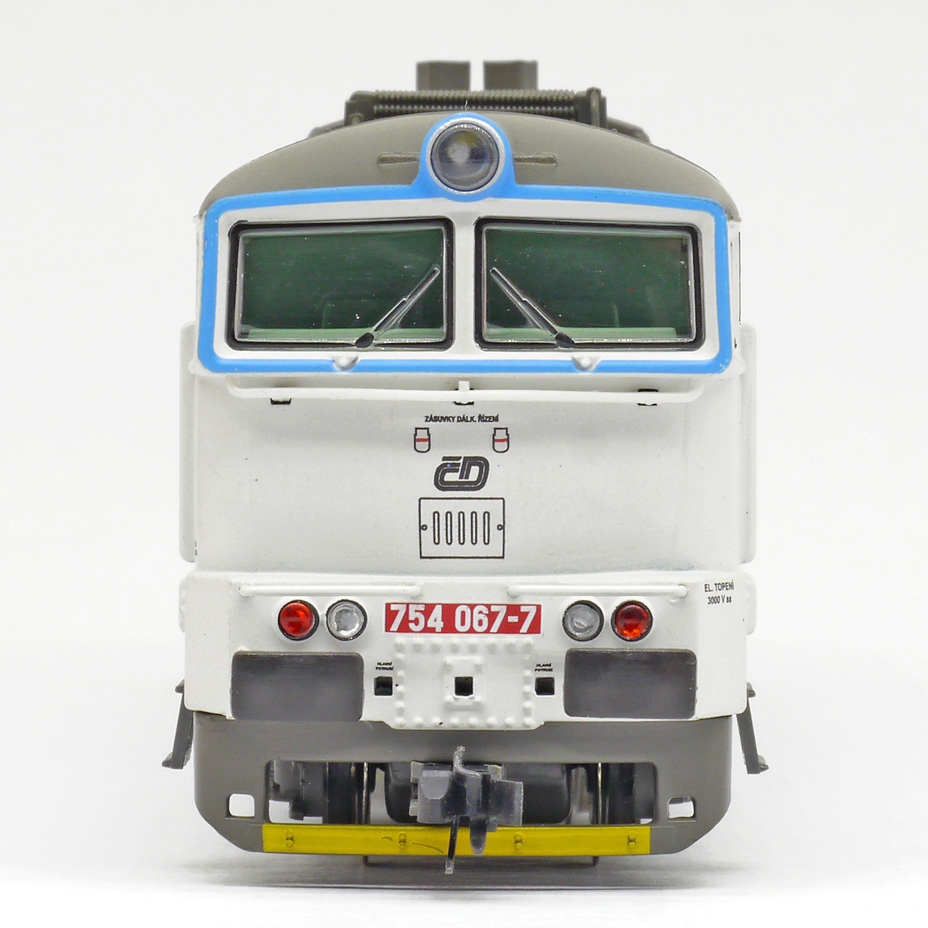 Kód   CD-754-067  [Lokomotivy] → [Motorové] → [T478.3 „Brejlovec”] → CD-754-067: dieselová lokomotiva modrá s výstražným pruhem, šedý rám