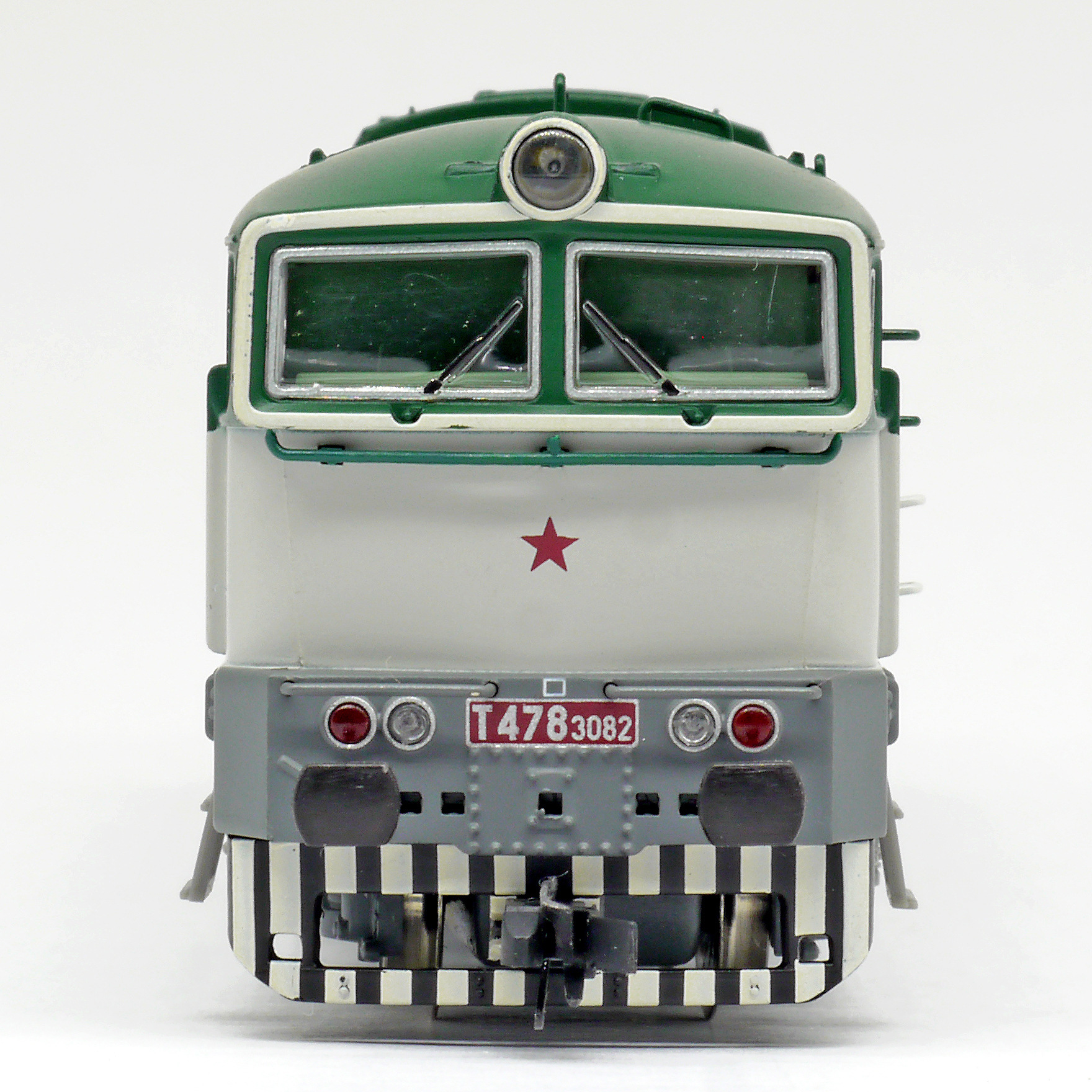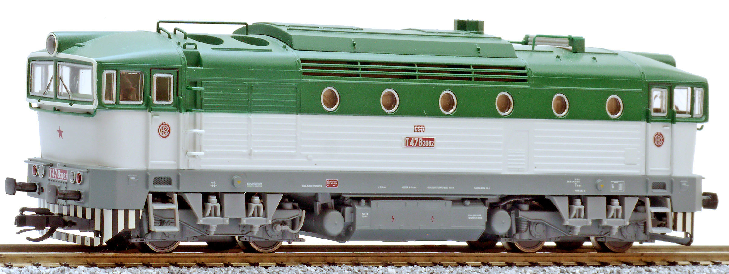Kód   TT753-T113  [Lokomotivy] → [Motorové] → [T478.3 „Brejlovec”] → TT753-T113: dieselová lokomotiva bílá-zelená, šedý rám a pojezd