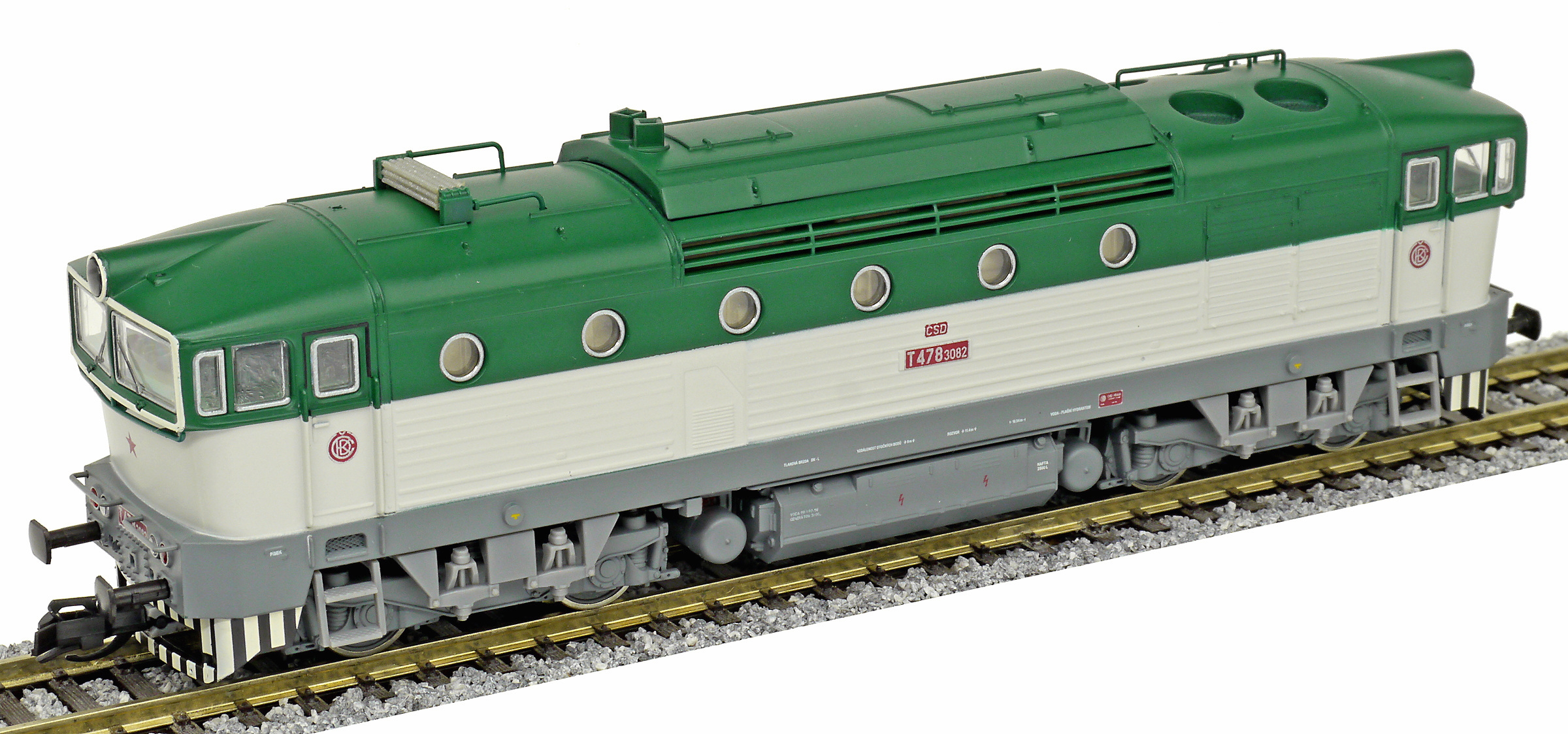 Kód   33389  [Lokomotivy] → [Motorové] → [T478.3 „Brejlovec”] → 33389: dieselová lokomotiva v barevné kombinaci zelená-světle šedá