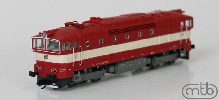 Kód   TT753-212  [Lokomotivy] → [Motorové] → [T478.3 „Brejlovec”] → TT753-212: dieselová lokomotiva červená s výstražným pruhem, šedá střecha a podvozky