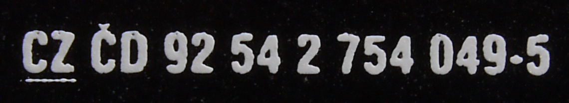 Číslo   92 54 2 754 049-5  Kontrolní číslice je v pořádku  Toto číslo vozu je použito na jiném modelu  Tovární číslo