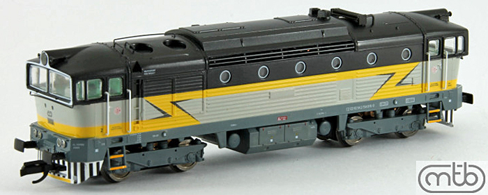 Popis   dieselová lokomotiva světle šedá se žlutými blesky,černá střechy, tmavěšedý rám a pojezd