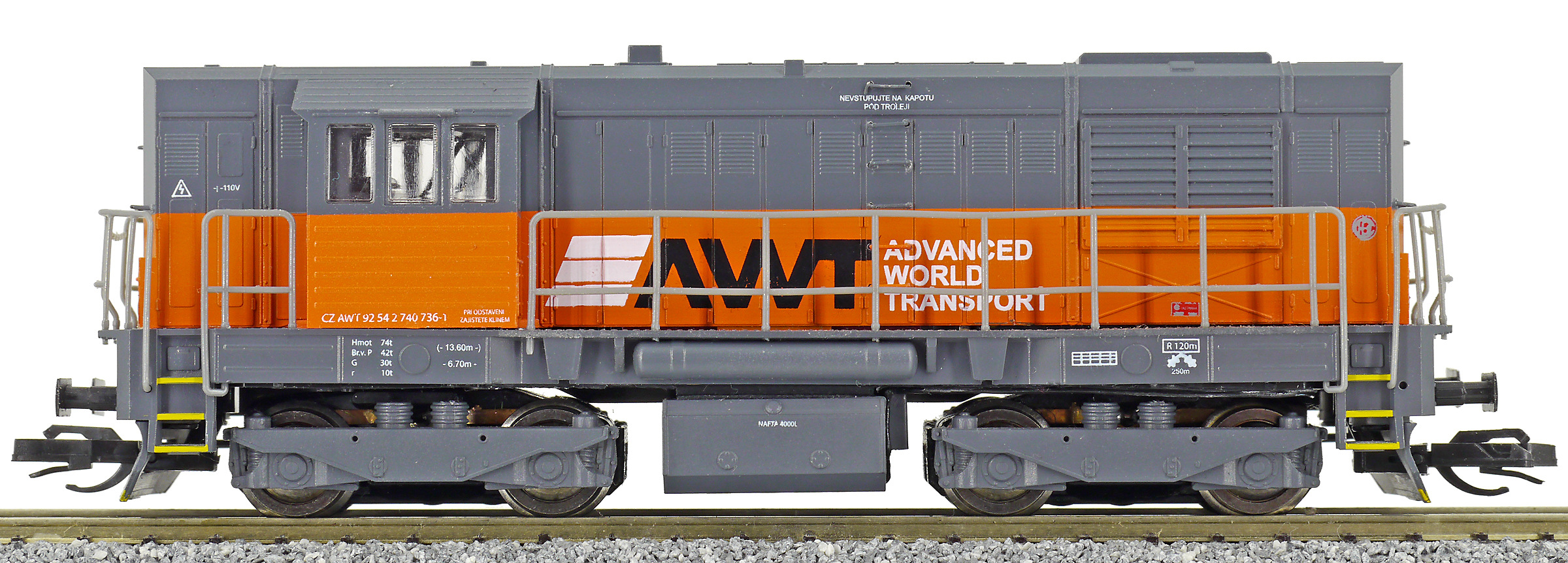 Popis   dieselová lokomotiva tmavě šedá s oranžovým pásem „AWT“