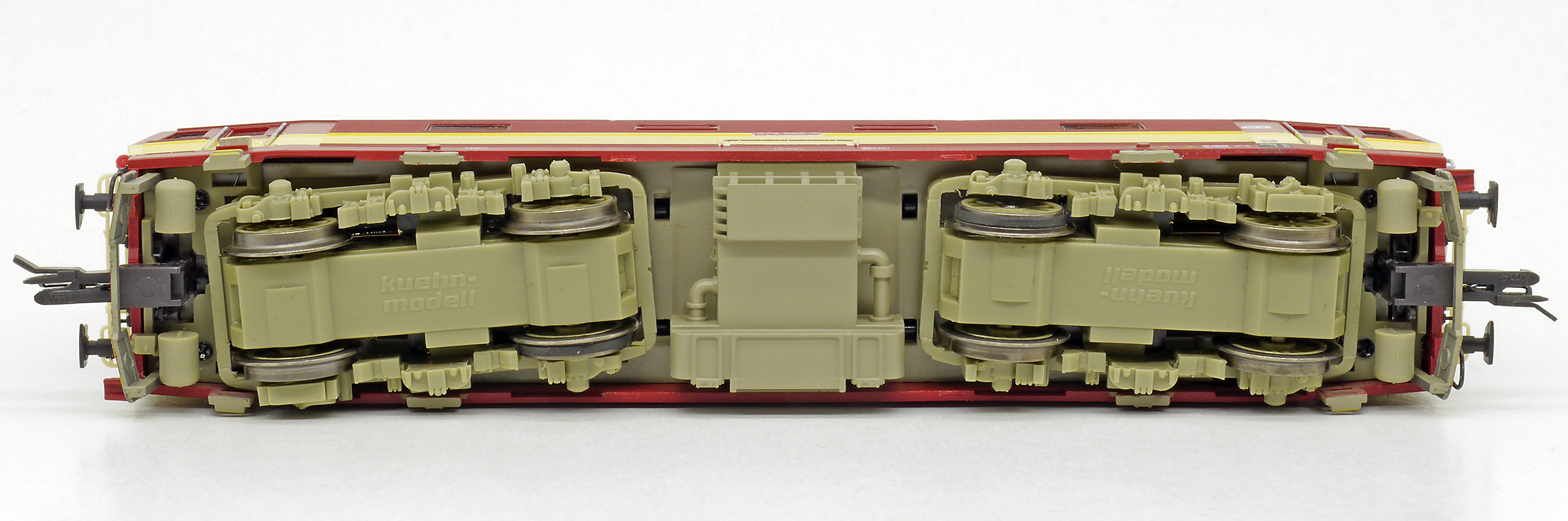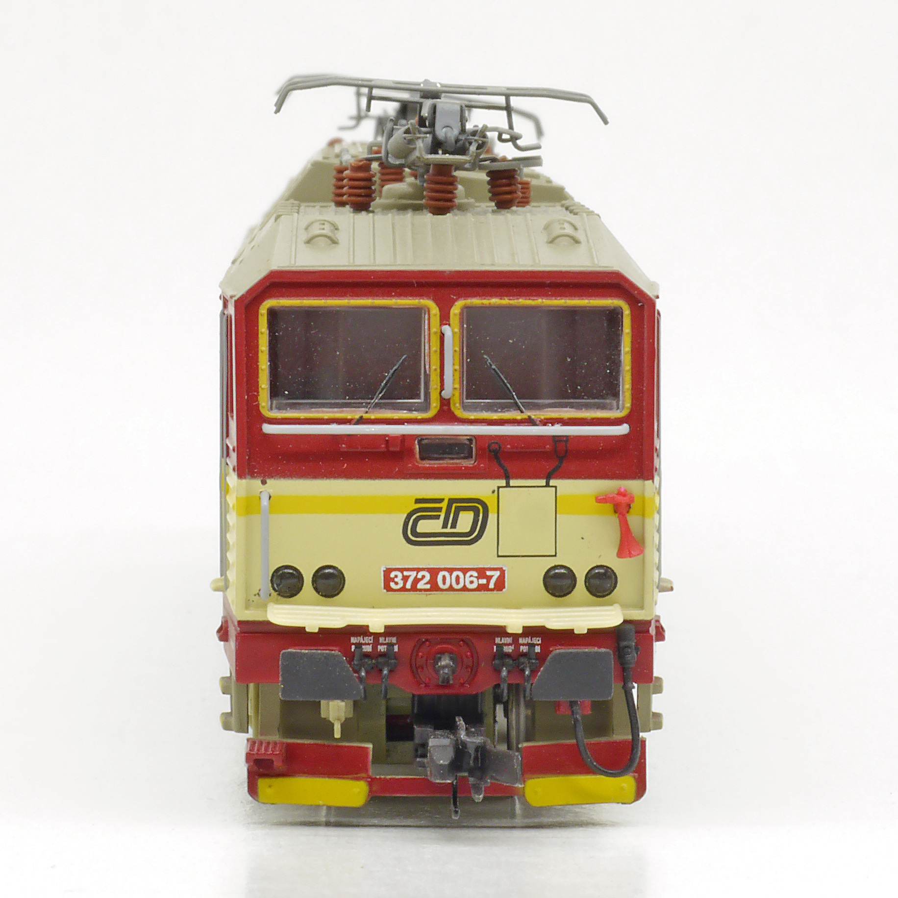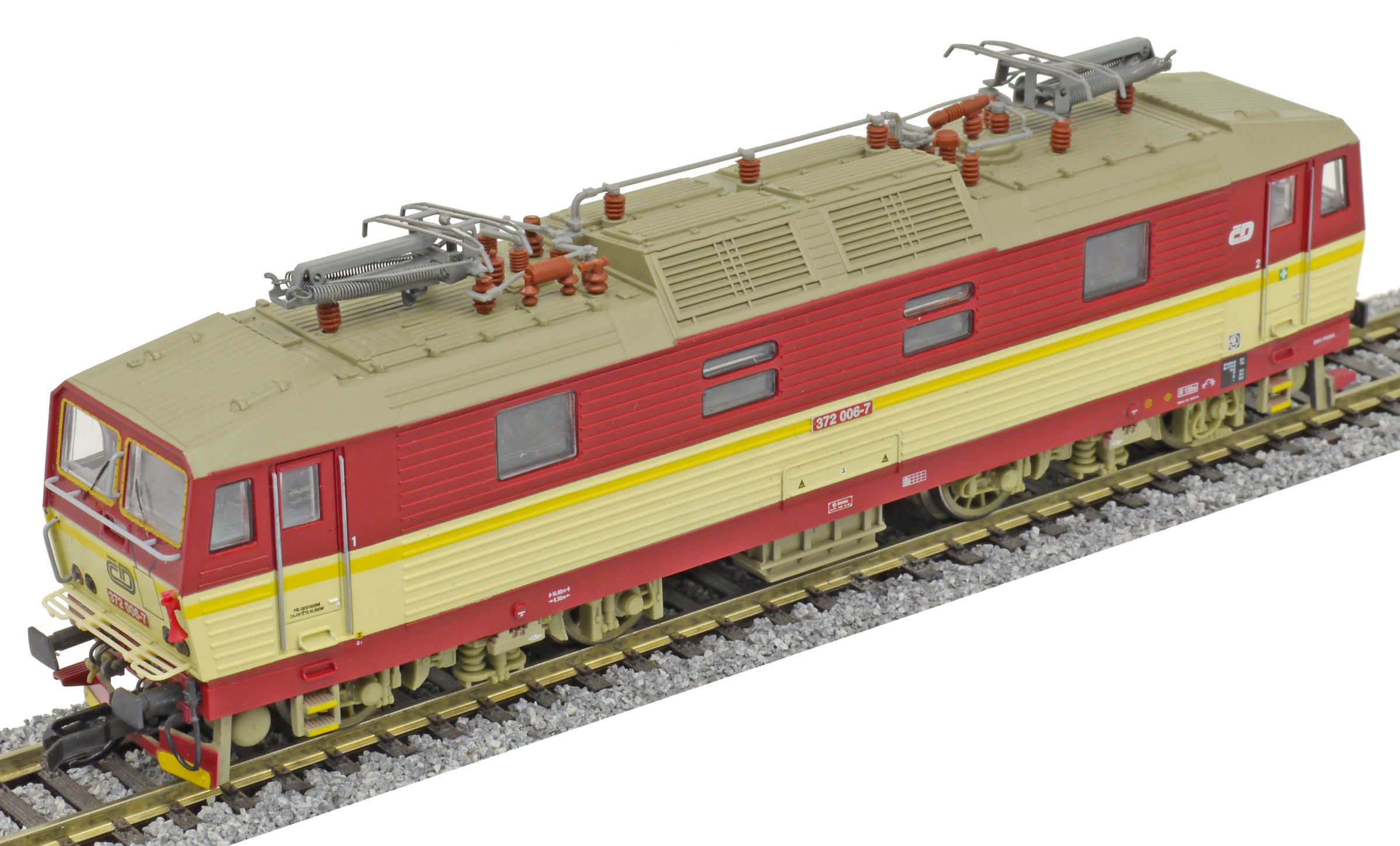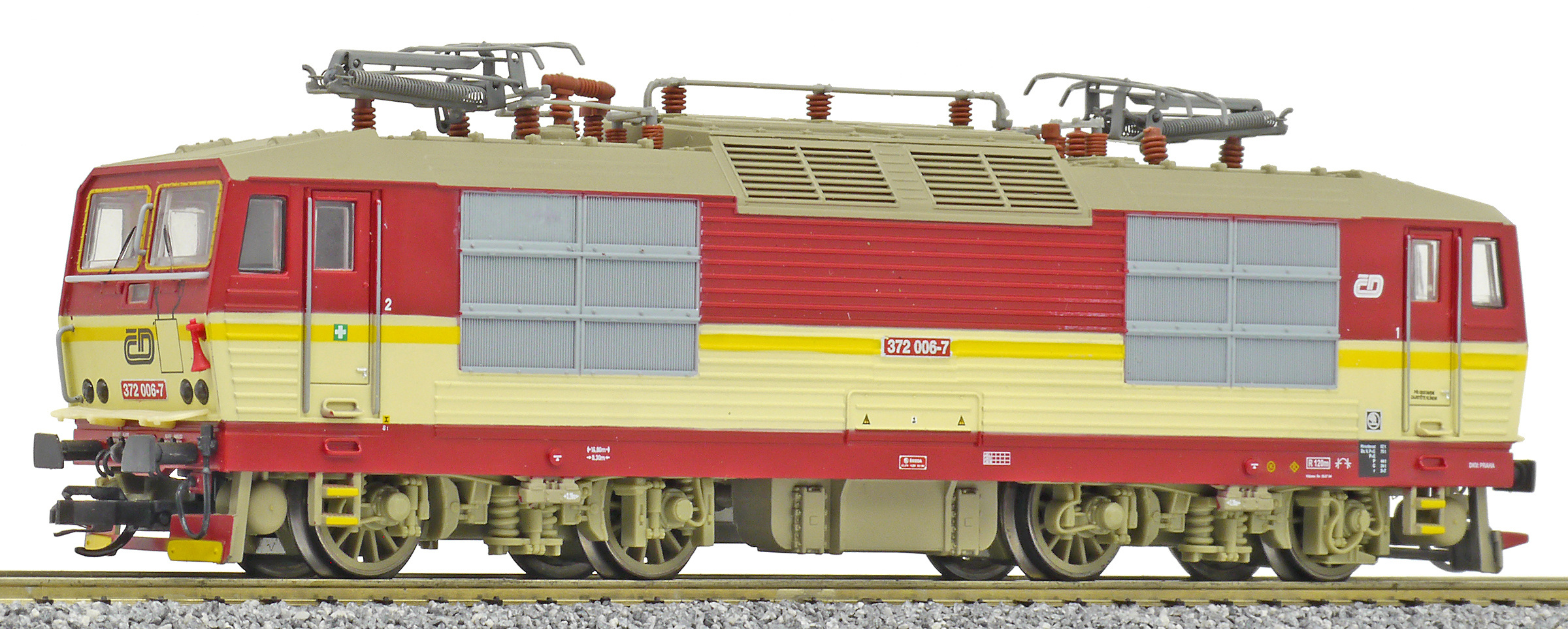 Popis   elektrická lokomotiva červená-slonová kost, šedá střecha a šedé polopantografy